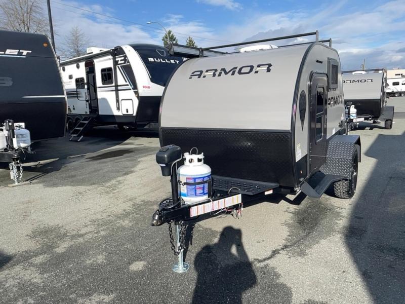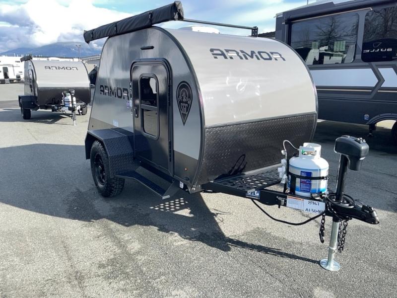With any Armor LT teardrop trailer or travel trailer by Skinny Guy Campers, you will be able to enjoy your adventures for years to come thanks to their rugged and durable design. The Torsion-Flex 3,000 lb. independent suspension with electric brakes and max-clearance design will help make towing smoother than ever, plus there are over-sized, all-terrain radial tires with alloy aluminum sport wheels to help tackle tougher roads. There is also vacuum-bond fiberglass sidewall construction with Azdel and a Norco stamped and huck-bolted, heavy-gauge steel, powder-coated mainframe with an EZ-Extend hitch jack for hassle-free towing. Inside, you'll enjoy LED lighting, multiple 110V, 12V and USB ports to stay powered up, and a 12V, 3-speed roof vent to keep air flowing.
