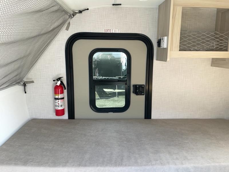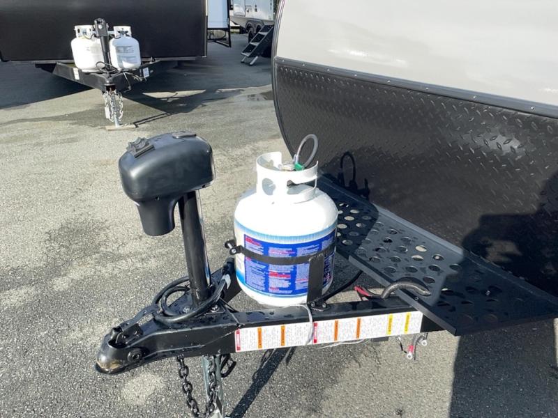 This is the perfect trailer for two campers looking for adventure. The dual entry doors will make it so easy for you both to climb into bed each night, and there is an overhead cabinet to keep your valuables out of the way. The A/C will keep you cool on those hot summer camping months, and there is also a 14,300 BTU Truma Combi heater and water heater to keep you comfortable in colder temps. An outside kitchen includes a sliding Blackstone Griddle, a sink, plus a 12V outside access refrigerator.