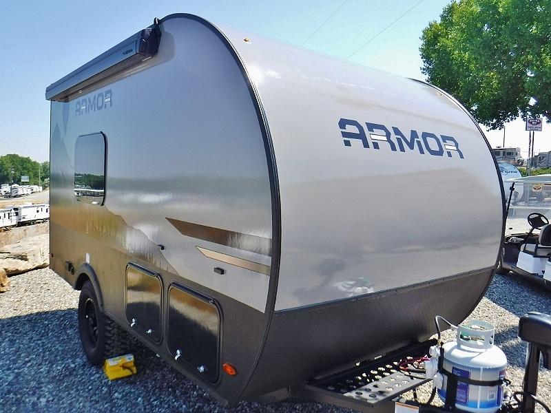 With any Armor LT teardrop trailer or travel trailer by Skinny Guy Campers, you will be able to enjoy your adventures for years to come thanks to their rugged and durable design. The Torsion-Flex 3,000 lb. independent suspension with electric brakes and max-clearance design will help make towing smoother than ever, plus there are over-sized, all-terrain radial tires with alloy aluminum sport wheels to help tackle tougher roads. There is also vacuum-bond fiberglass sidewall construction with Azdel and a Norco stamped and huck-bolted, heavy-gauge steel, powder-coated mainframe with an EZ-Extend hitch jack for hassle-free towing. Inside, you'll enjoy LED lighting, multiple 110V, 12V and USB ports to stay powered up, and a 12V, 3-speed roof vent to keep air flowing.