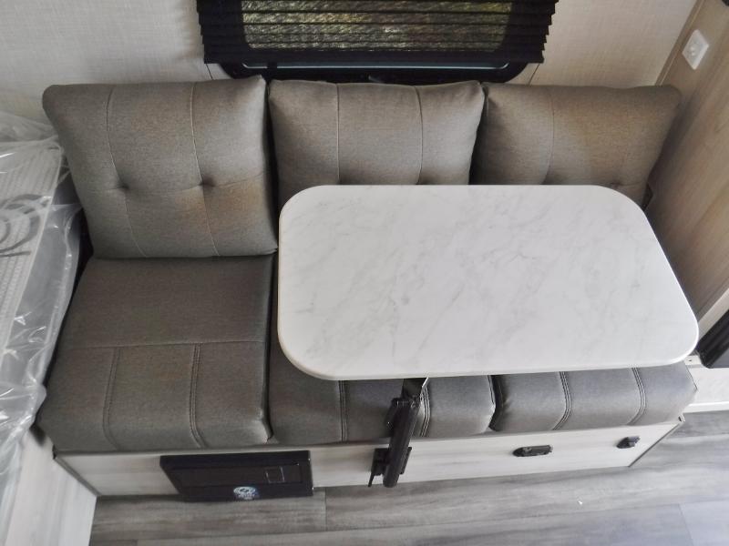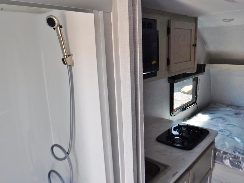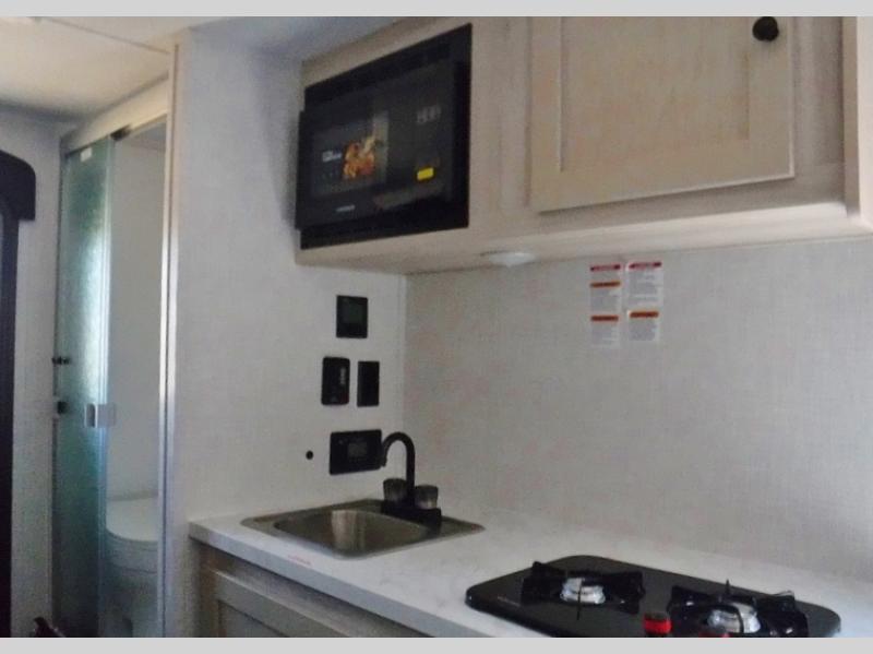 It will be so easy to enjoy camping in this travel trailer for three campers. The front queen bed will provide a comfy place to rest your head each night, and there is an overhead shelf to keep your belongings out of the way. A jackknife sofa will be the perfect place to relax, dine, and even let an additional camper sleep over. You'll find everything you need to prepare meals each day, including a two burner cooktop and a microwave oven, plus a 3.3 cu. ft. Super Chill 12V refrigerator for the leftovers!