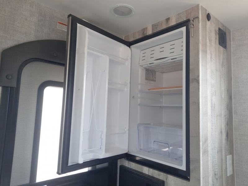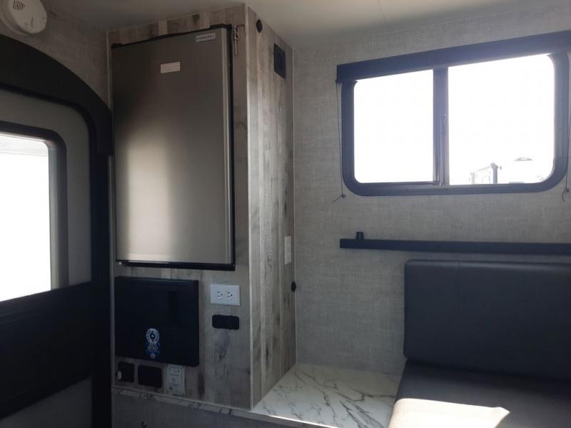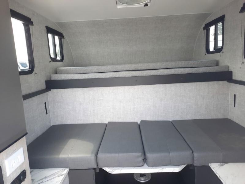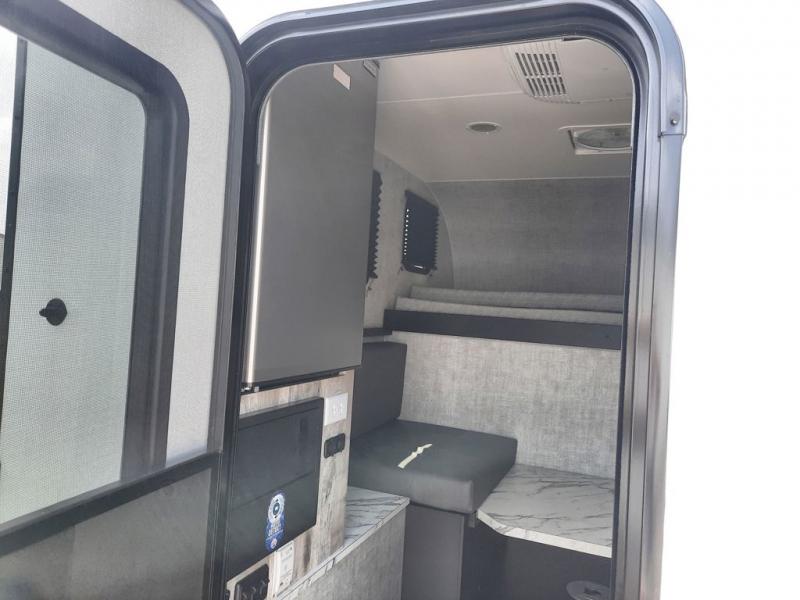 Head to your favorite destinations in this truck camper! The cab over bed will have you feeling recharged and ready to go each morning, plus the 30" wide dinette can also convert into an extra sleeping space. And if you want an extra 80" in length, choose the optional North/South pull-out bed in place of the cab over bed! The countertop space on either side of the camper will make it easier to prepare your delicious meals and the optional microwavewould come in handy on those days when you only have time to reheat leftovers. With the large wardrobe cabinet, there is space for hanging clothes and next to it is a portable toilet. If you want extra perks then you can add options like a Truma furnace, a roof air conditioner, and a solar panel roof system to go off the grid!