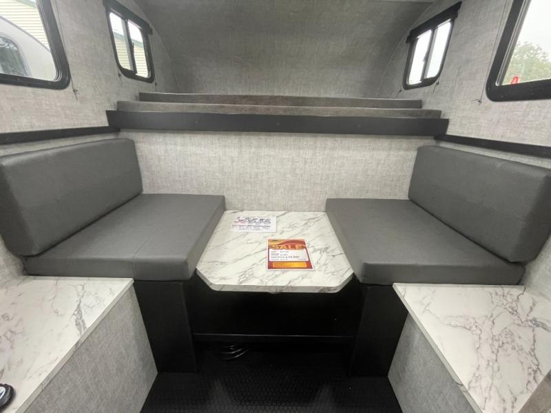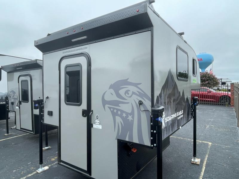 Each one of these Soaring Eagle ADLAR truck campers take the concept of entry level campers and adds real functionality to it! Their entire construction consists of an all aluminum tubular construction for better strength, lighter weight, and indifference to water. The smooth fiberglass exterior and rugged black diamond pate aluminum skin around the lower perimeter will turn heads in the highway. There are LED exterior marker/clearance lights and LED exterior security light over the entrance door for you to see clearly at night. Come find your favorite one today!