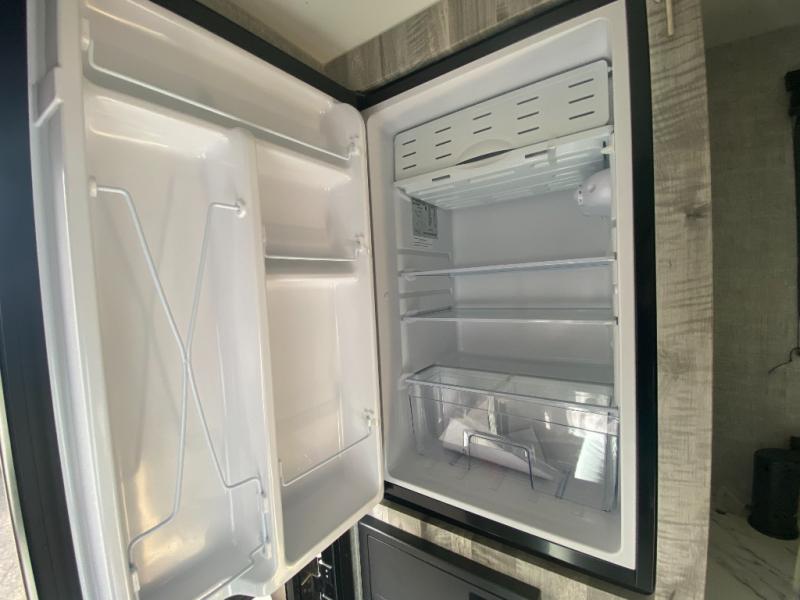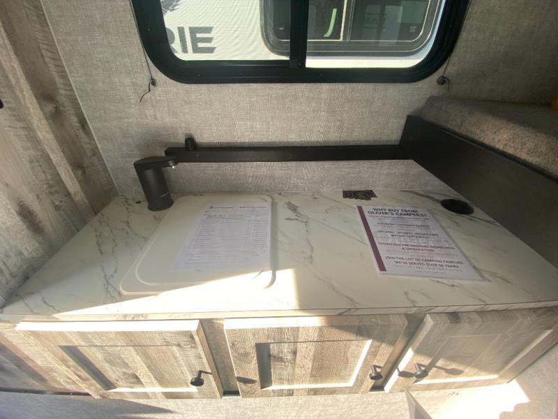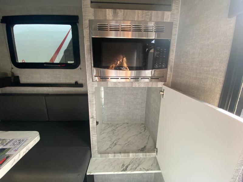 Pull-Out North/South Bed, 12V Refrigerator, MaxxAir Fan, Sink w/Portable Dometic Faucet & Water Tank, Electric Induction Cooktop, 100V Electric pkg, 100 Amp Hour Lithium Battery (Bluetooth heated), Roof A/C Prep.