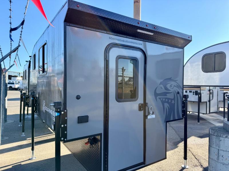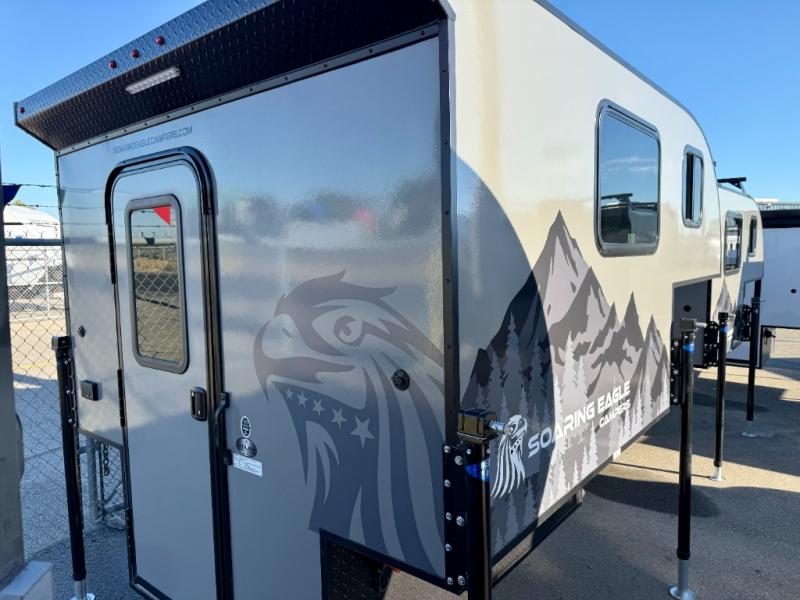 Each one of these Soaring Eagle ADLAR truck campers take the concept of entry level campers and adds real functionality to it! Their entire construction consists of an all aluminum tubular construction for better strength, lighter weight, and indifference to water. The smooth fiberglass exterior and rugged black diamond pate aluminum skin around the lower perimeter will turn heads in the highway. There are LED exterior marker/clearance lights and LED exterior security light over the entrance door for you to see clearly at night. Come find your favorite one today!