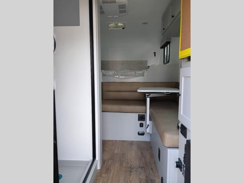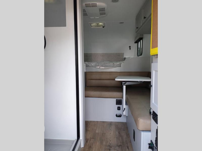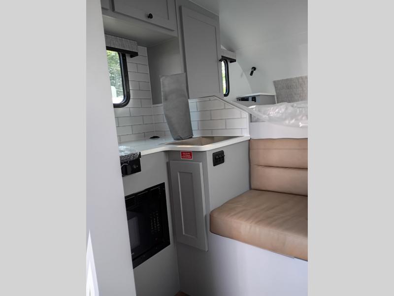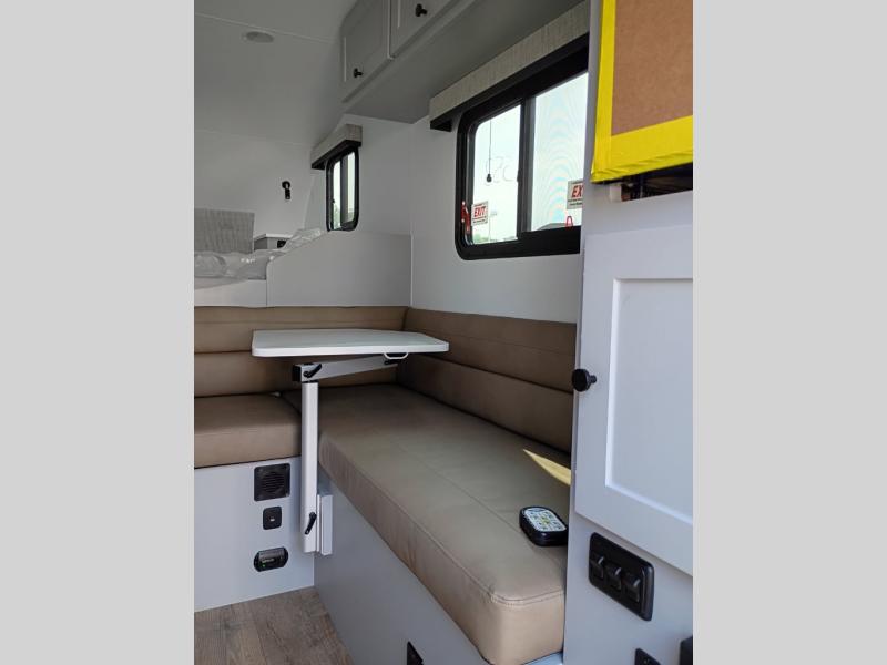 Make each journey count with this cozy truck camper! Once you stop for the day, you can make dinner on the two-burner cooktop, grab a cold drink from the 12V refrigerator, and dine at the L-shaped dinette seating. There is a sink that will allow you to clean up the dishes while your camping companion sets up a board game! The wet bath on board means you won't have to leave the camper to wash up before bed, and speaking of bed, the residential quality mattress up front is sure to bring lots of comfort! There are also bedside storage compartments and nightstands, plus an additional wardrobe to keep your clothes wrinkle-free.