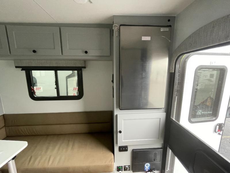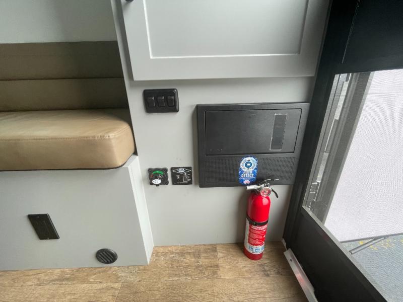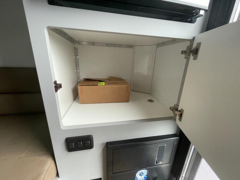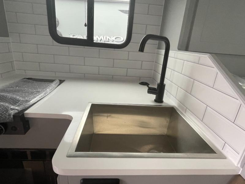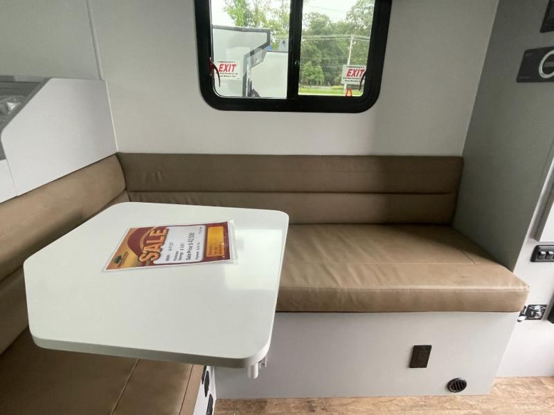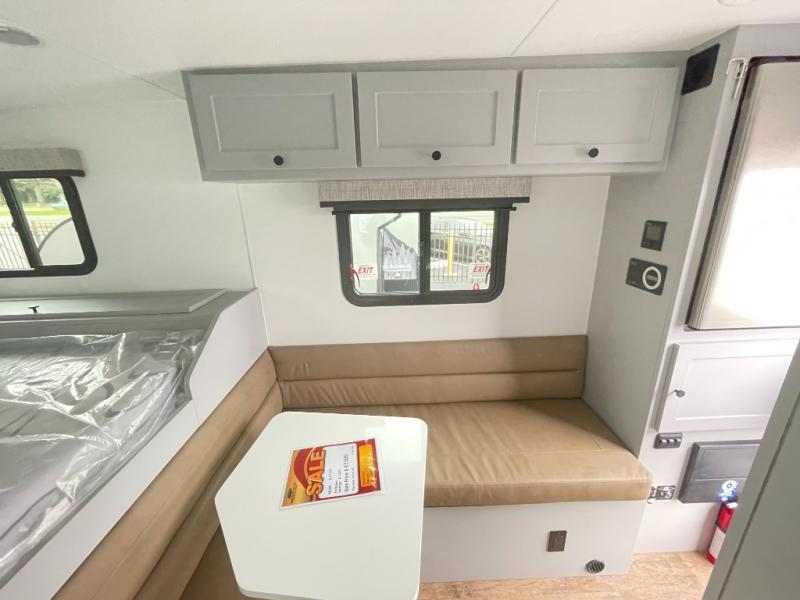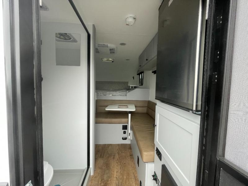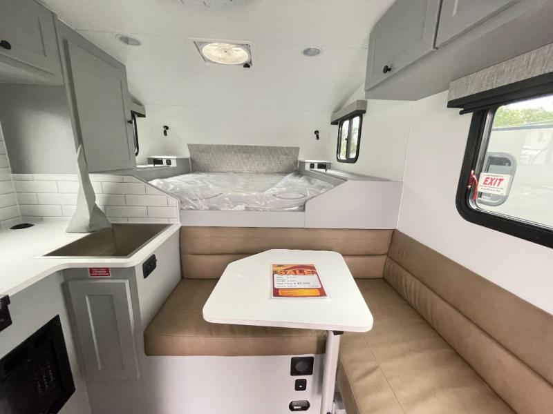 Make each journey count with this cozy truck camper! Once you stop for the day, you can make dinner on the two-burner cooktop, grab a cold drink from the 12V refrigerator, and dine at the L-shaped dinette seating. There is a sink that will allow you to clean up the dishes while your camping companion sets up a board game! The wet bath on board means you won't have to leave the camper to wash up before bed, and speaking of bed, the residential quality mattress up front is sure to bring lots of comfort! There are also bedside storage compartments and nightstands, plus an additional wardrobe to keep your clothes wrinkle-free.