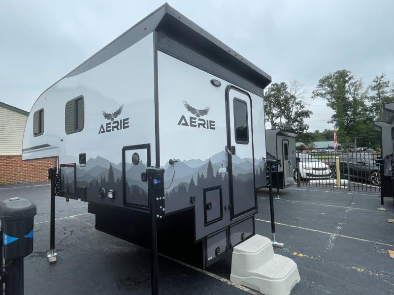 The AERIE truck camper by Soaring Eagle is engineered and constructed to stand the test of time with its welded, tubular aluminum and composites and no wood throughout! This truck camper is designed for 3/4 ton and one-ton trucks and can fit an 8' bed with the tailgate closed. This allows you to use your own rear-view camera/sensors plus built-in steps that your truck may have. You'll also appreciate the fully enclosed and heated basement design for the best installation in its class, electric jacks for easy set-up, and a 20 lb. LP tank with a gauge. The interior of the AERIE will have you feeling right at home with its open floorplan, spacious bath, functional kitchen, and generous storage spaces!