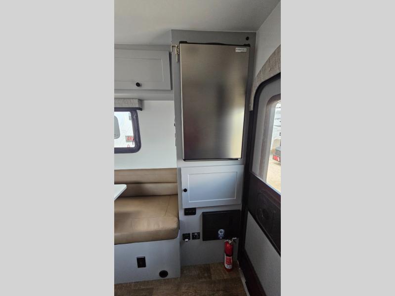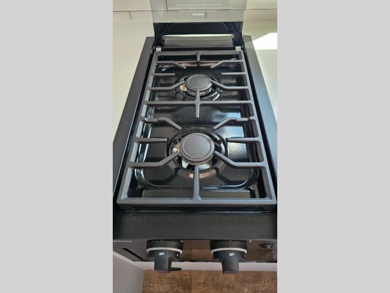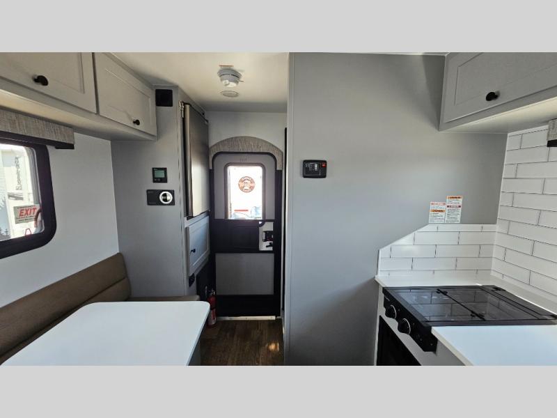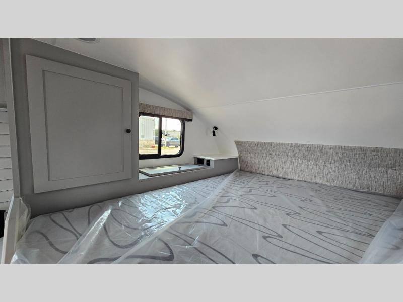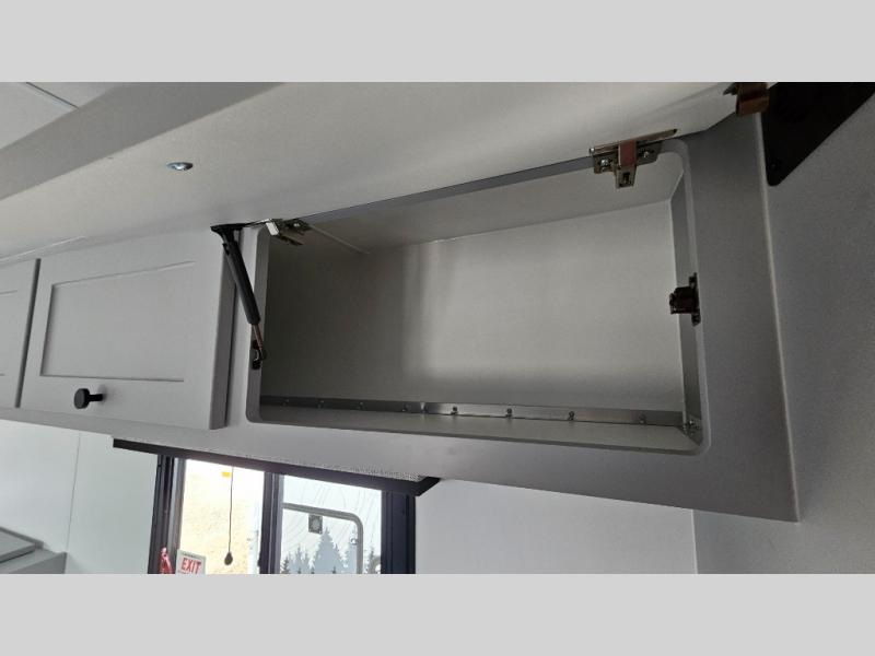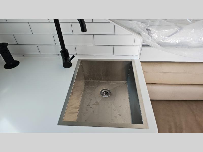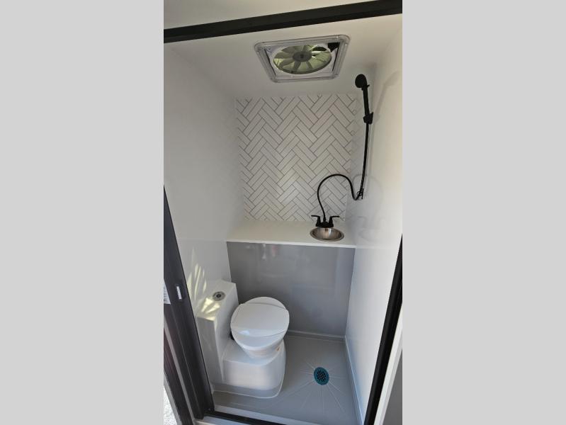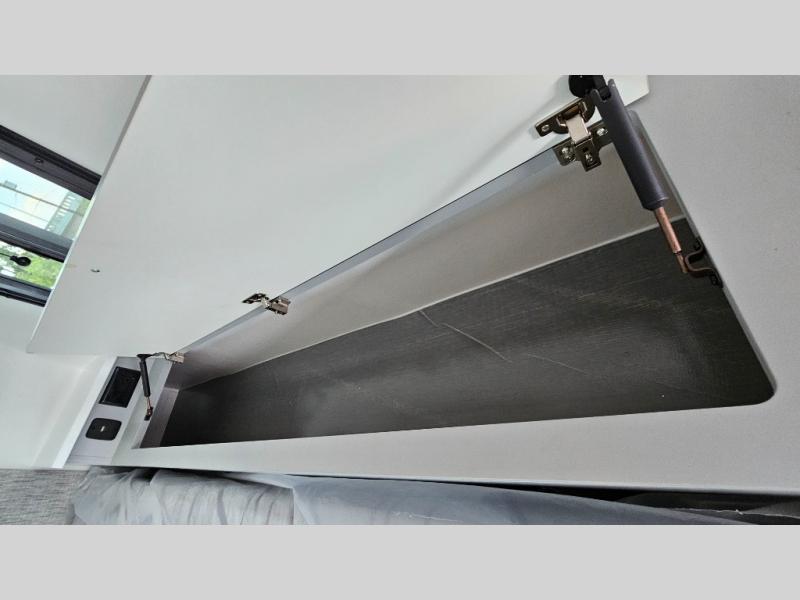 Like all Soaring Eagle Campers, the AERIE is constructed of all welded, tubular aluminum and composites, and features a fully enclosed and heated basement design; TRUMA Combi high-efficiency furnace/water heater; electric jacks, spacious bathroom/shower with plenty of room to maneuver (40”x40”); 12V refrigerator, nice size kitchen area with 2 burner cooktop range, microwave/convection/air fryer oven, and loads of storage. The open floorplan makes the AERIE feel like a much larger camper which is enhanced by automotive grade foam in the faux leather covered dinette seating and residential quality queen bed mattress with memory foam top. The permanent North/South bed has dual nightstands with built-in chargers/outlets; lots of storage space along the side of each bed, and more – ALL STANDARD in the base price tag!