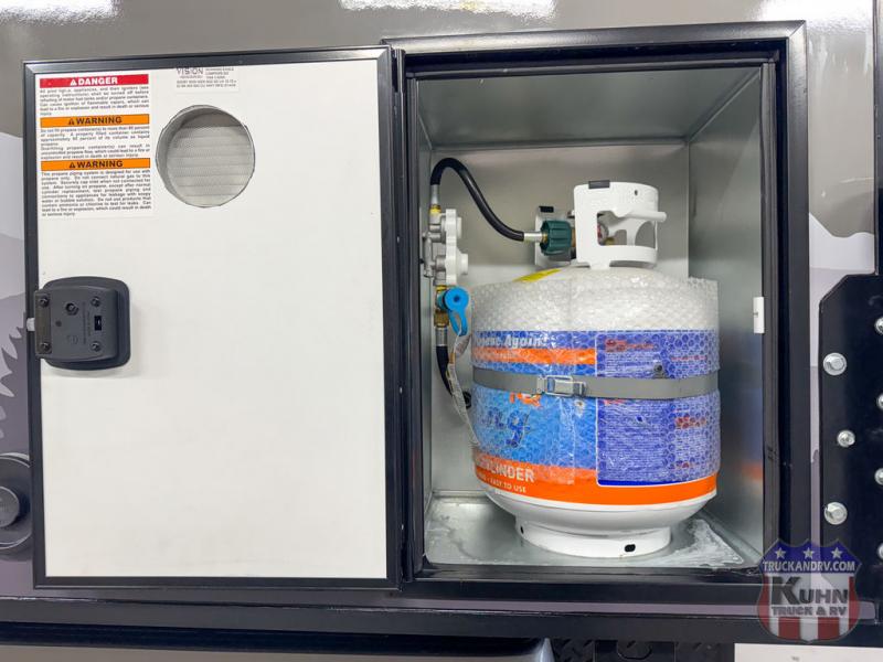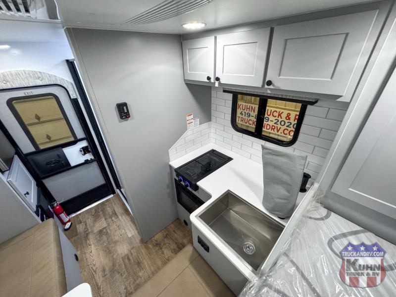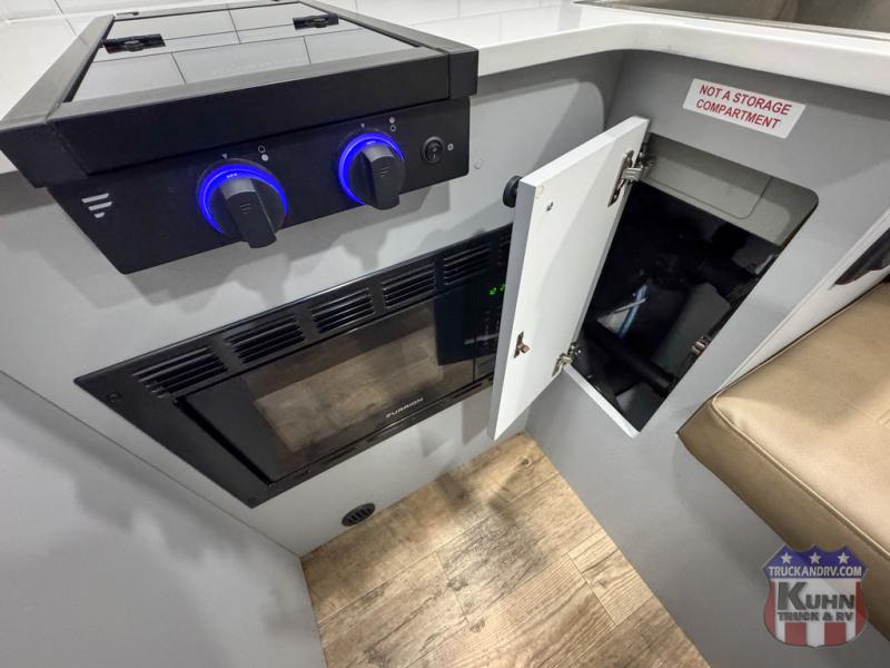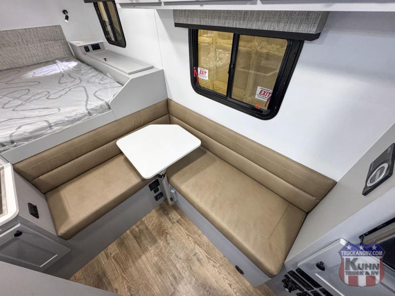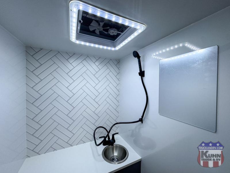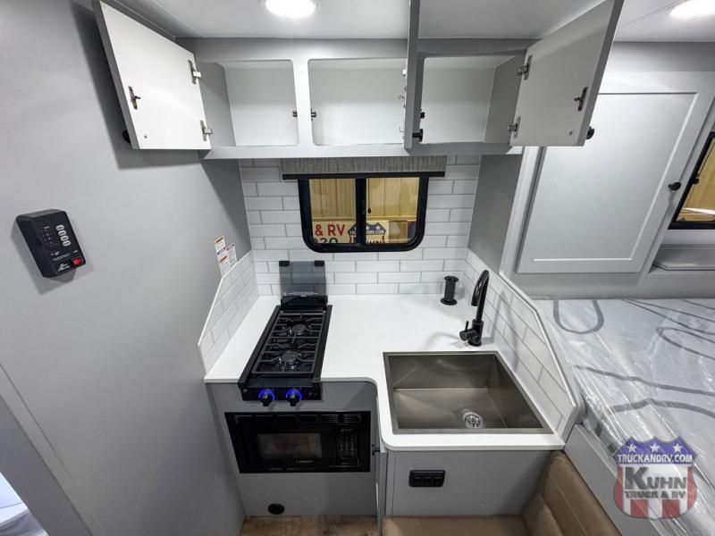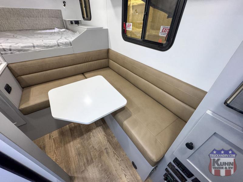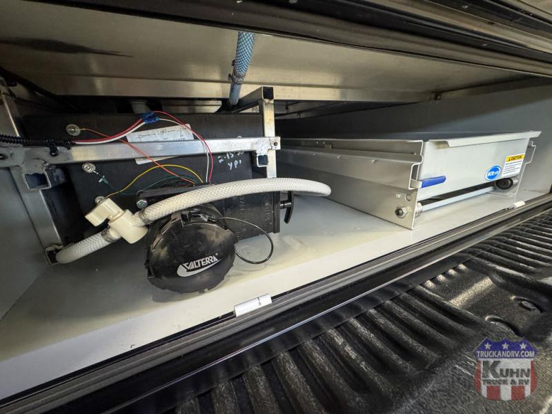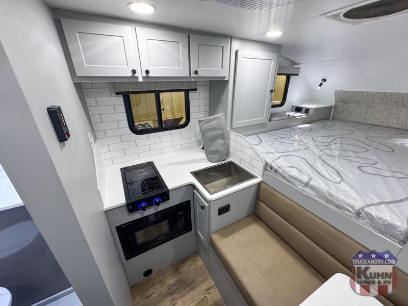 Make each journey count with this cozy truck camper! Once you stop for the day, you can make dinner on the two-burner cooktop, grab a cold drink from the 12V refrigerator, and dine at the L-shaped dinette seating. There is a sink that will allow you to clean up the dishes while your camping companion sets up a board game! The wet bath on board means you won't have to leave the camper to wash up before bed, and speaking of bed, the residential quality mattress up front is sure to bring lots of comfort! There are also bedside storage compartments and nightstands, plus an additional wardrobe to keep your clothes wrinkle-free.