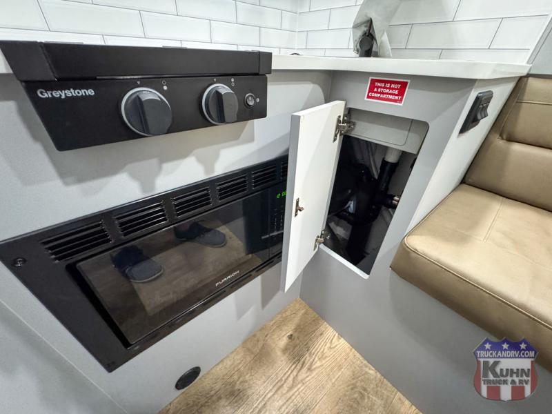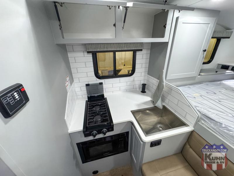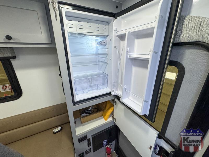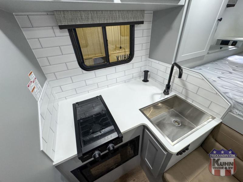 Make each journey count with this cozy truck camper! Once you stop for the day, you can make dinner on the two-burner cooktop, grab a cold drink from the 12V refrigerator, and dine at the L-shaped dinette seating. There is a sink that will allow you to clean up the dishes while your camping companion sets up a board game! The wet bath on board means you won't have to leave the camper to wash up before bed, and speaking of bed, the residential quality mattress up front is sure to bring lots of comfort! There are also bedside storage compartments and nightstands, plus an additional wardrobe to keep your clothes wrinkle-free.