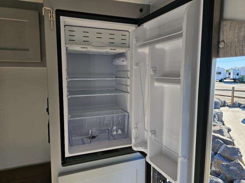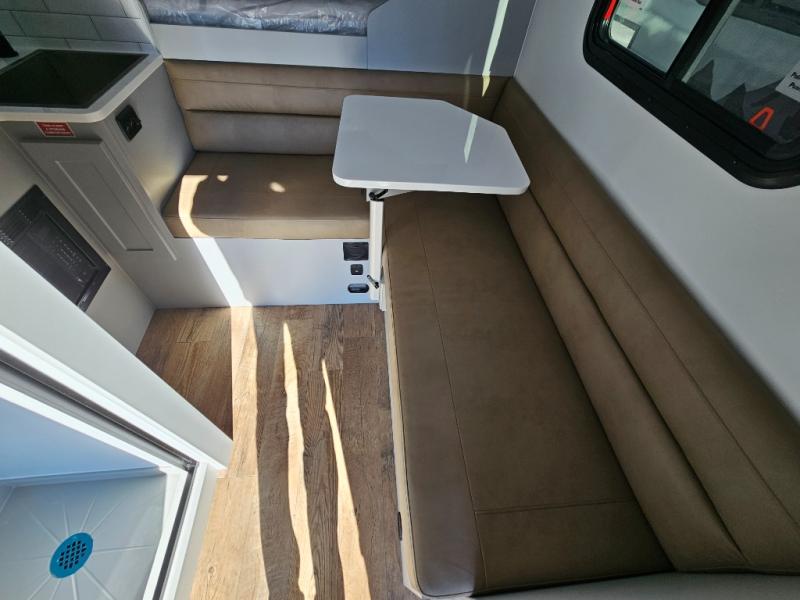 Make each journey count with this cozy truck camper! Once you stop for the day, you can make dinner on the two-burner cooktop, grab a cold drink from the 12V refrigerator, and dine at the L-shaped dinette seating. There is a sink that will allow you to clean up the dishes while your camping companion sets up a board game! The wet bath on board means you won't have to leave the camper to wash up before bed, and speaking of bed, the residential quality mattress up front is sure to bring lots of comfort! There are also bedside storage compartments and nightstands, plus an additional wardrobe to keep your clothes wrinkle-free.