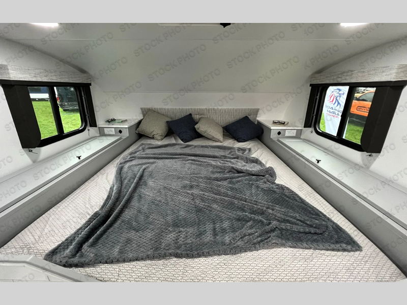 Make each journey count with this cozy truck camper! Once you stop for the day, you can make dinner on the two-burner cooktop, grab a cold drink from the 12V refrigerator, and dine at the L-shaped dinette seating. There is a sink that will allow you to clean up the dishes while your camping companion sets up a board game! The wet bath on board means you won't have to leave the camper to wash up before bed, and speaking of bed, the residential quality mattress up front is sure to bring lots of comfort! There are also bedside storage compartments and nightstands, plus an additional wardrobe to keep your clothes wrinkle-free.