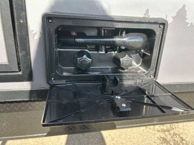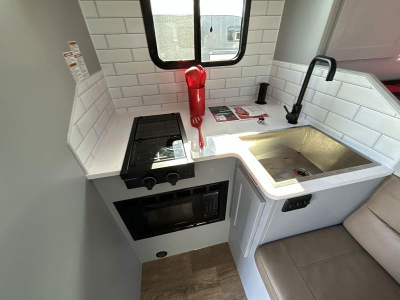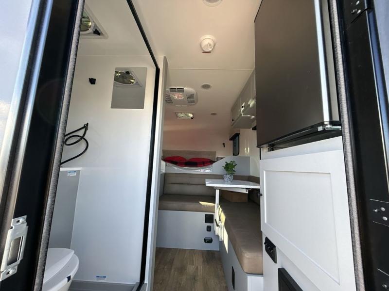 Make each journey count with this cozy truck camper! Once you stop for the day, you can make dinner on the two-burner cooktop, grab a cold drink from the 12V refrigerator, and dine at the L-shaped dinette seating. There is a sink that will allow you to clean up the dishes while your camping companion sets up a board game! The wet bath on board means you won't have to leave the camper to wash up before bed, and speaking of bed, the residential quality mattress up front is sure to bring lots of comfort! There are also bedside storage compartments and nightstands, plus an additional wardrobe to keep your clothes wrinkle-free.