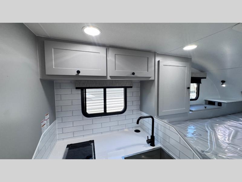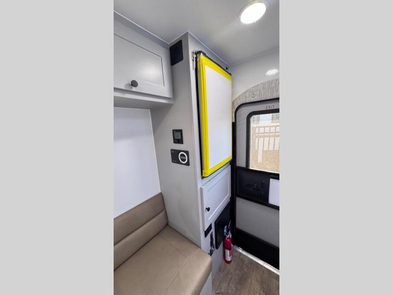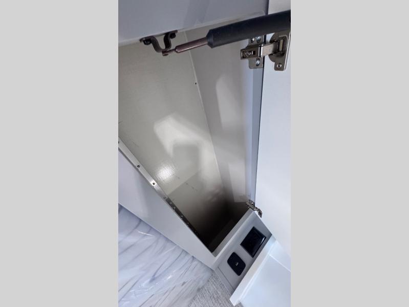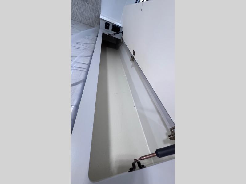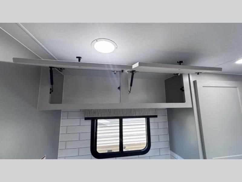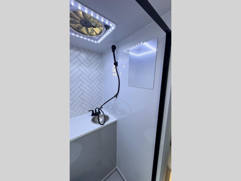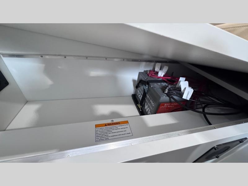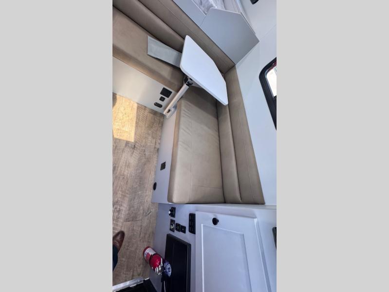 Like all Soaring Eagle Campers, the AERIE is constructed of all welded, tubular aluminum and composites, and features a fully enclosed and heated basement design; TRUMA Combi high-efficiency furnace/water heater; electric jacks, spacious bathroom/shower with plenty of room to maneuver (40”x40”); 12V refrigerator, nice size kitchen area with 2 burner cooktop range, microwave/convection/air fryer oven, and loads of storage. The open floorplan makes the AERIE feel like a much larger camper which is enhanced by automotive grade foam in the faux leather covered dinette seating and residential quality queen bed mattress with memory foam top. The permanent North/South bed has dual nightstands with built-in chargers/outlets; lots of storage space along the side of each bed, and more – ALL STANDARD in the base price tag!