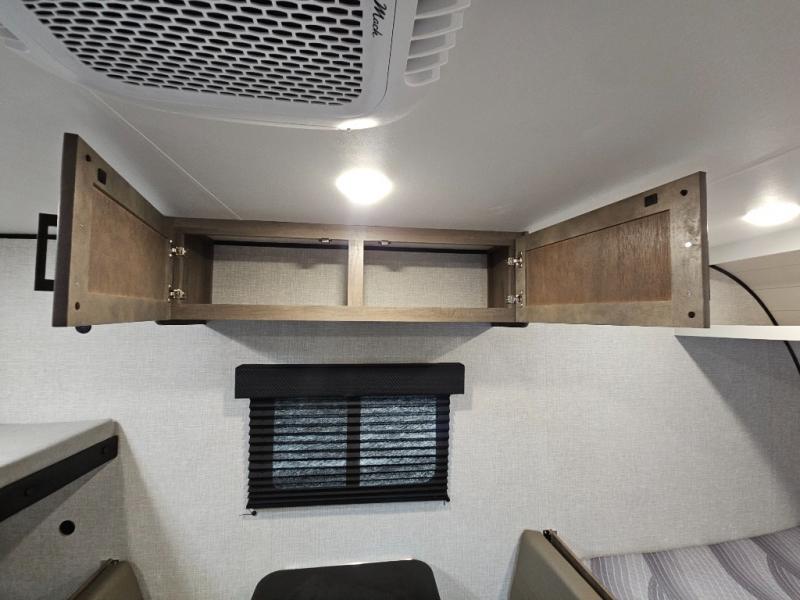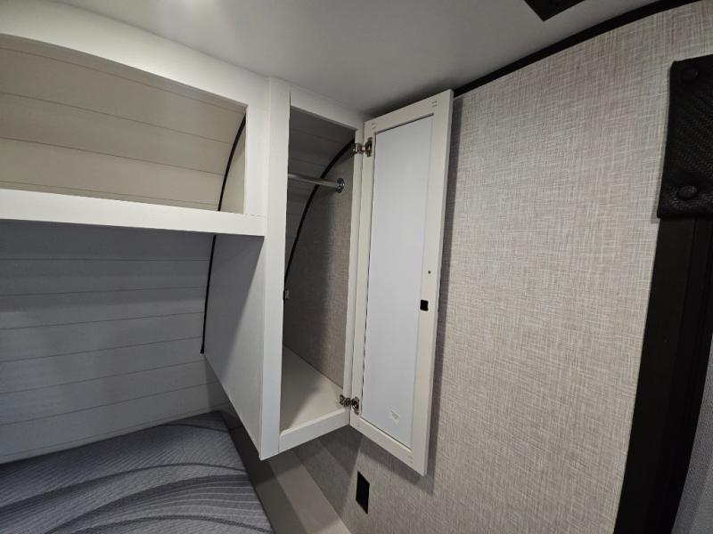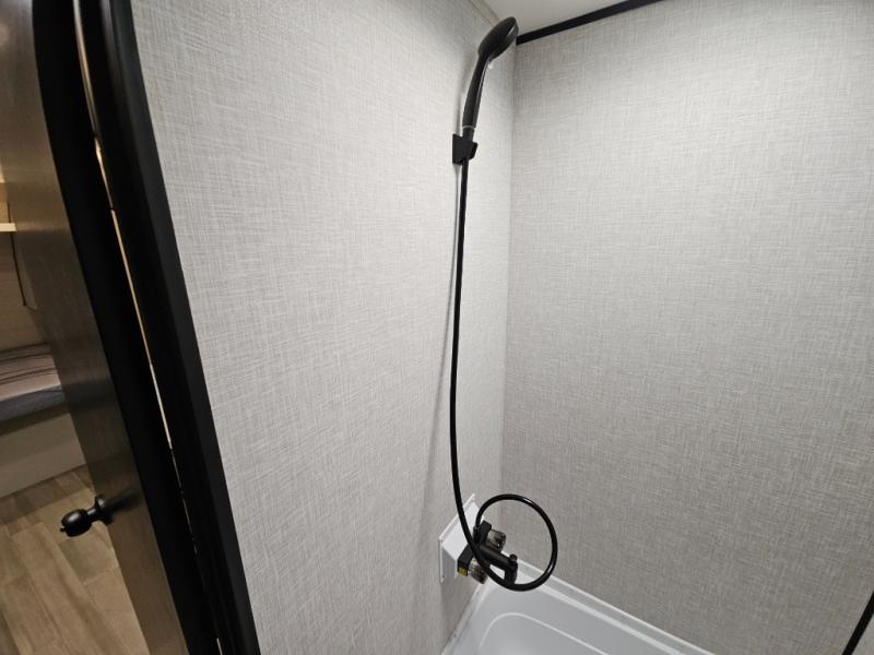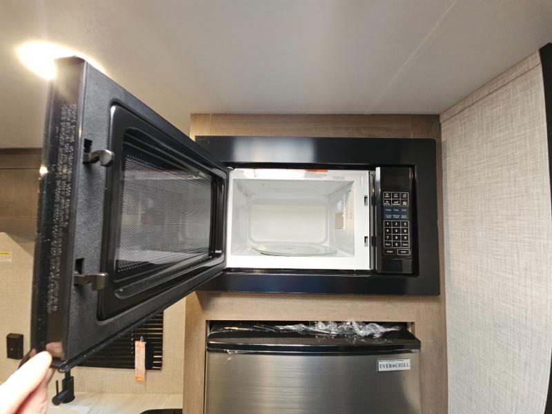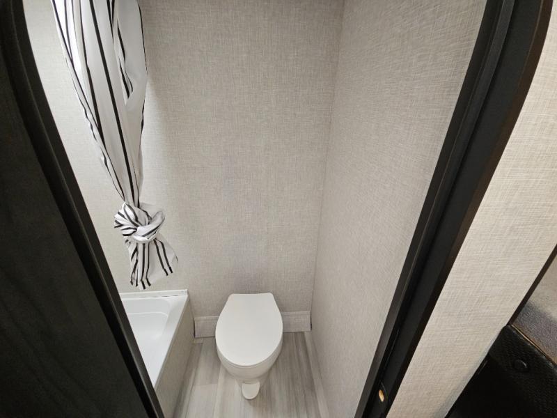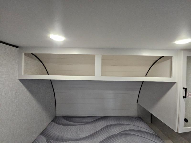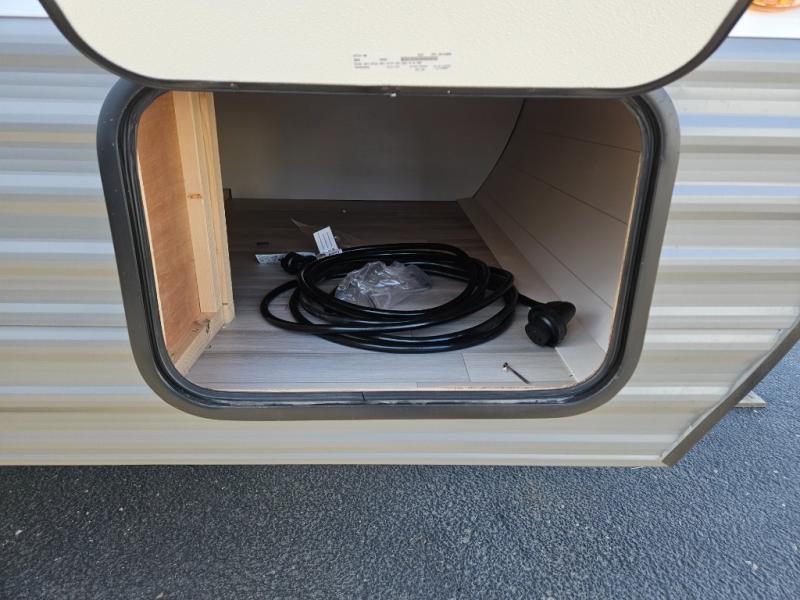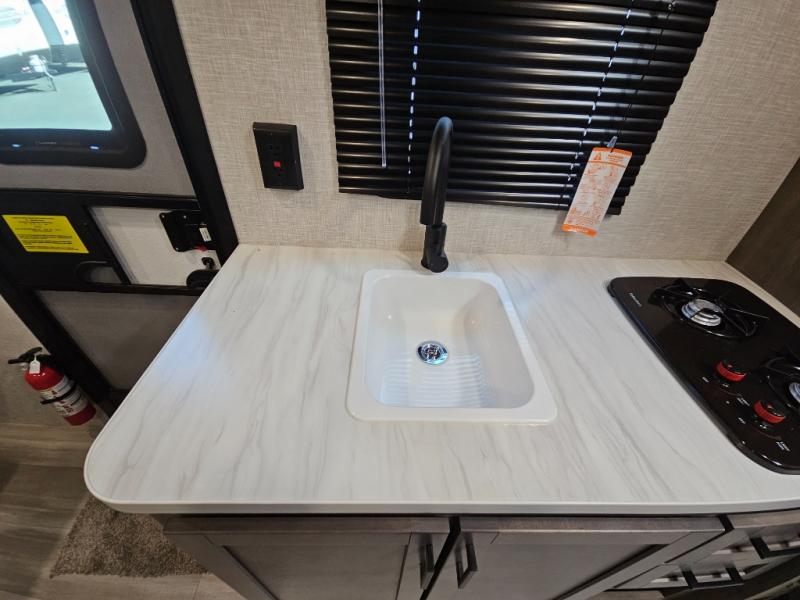 This simple, yet cozy travel trailer is perfect for all your outdoor excursions. You can unload the exterior storage when you get to camp, then head inside to make lunch on the two burner cooktop or microwave oven. A 12V refrigerator will keep your perishables fresh, and a booth dinette will provide dining space. Everyone can take turns freshening up in the private bath that includes a tub/shower and a toilet, and the little ones are sure to love the bunk beds!