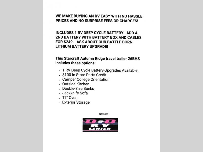 This Starcraft Autumn Ridge travel trailer 26BHS includes these options:
