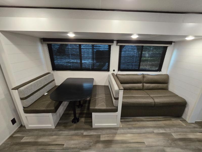 | Available Beds | Front private queen bed, double-size bunks, jackknife sofa, and a booth dinette that converts into a bed |