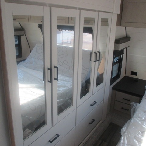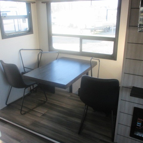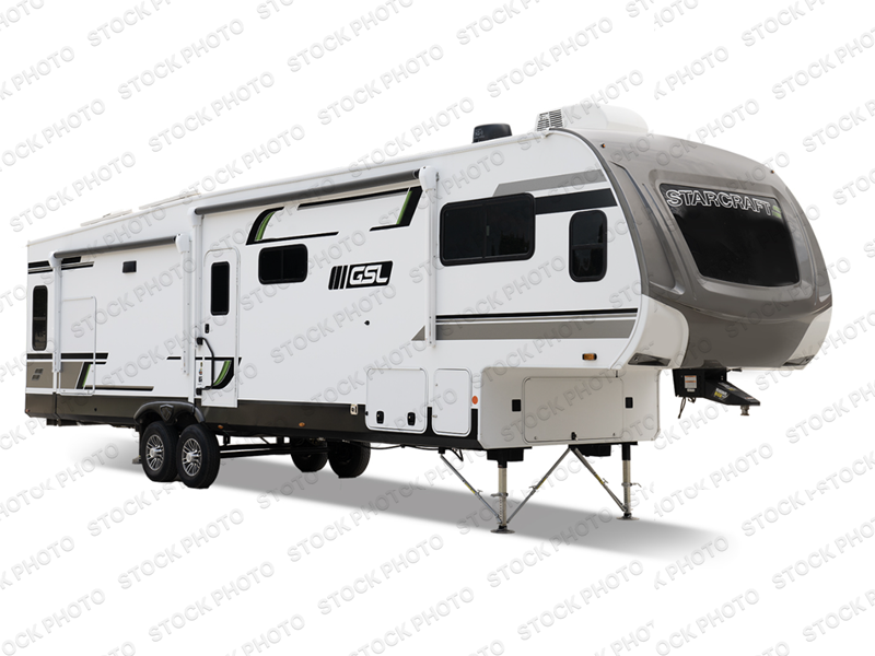 Each Starcraft GSL fifth wheel is built on a 100" wide body frame, and each includes TuffShell vacuumed bonded and laminated construction, reinforced with heavy duty fiberglass, and welded aluminum frame. The mandatory Four Seasons package which adds a heated and enclosed underbelly, high performance furnace, and double insulated baggage doors so you can camp even in colder weather. Inside you'll appreciate modern design elements like the residential vinyl flooring, roller blackout night shades, stainless steel appliances, and solid-surface kitchen countertops. High-tech features are also prominent like the TravelLink Bluetooth control of slides, lighting, awnings, cooling and more, plus the Xtend Solar I Package with a 200-watt solar panel and a 30-amp controller will let you go off grid when the adventure calls for it!