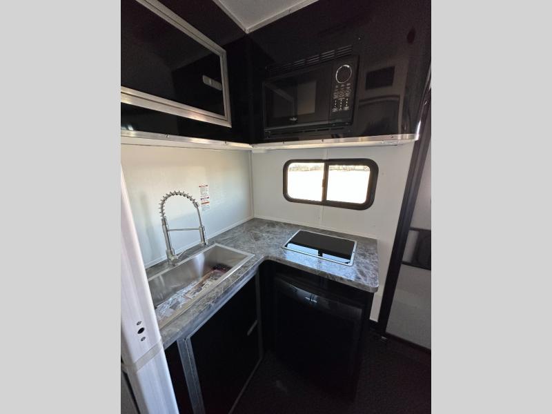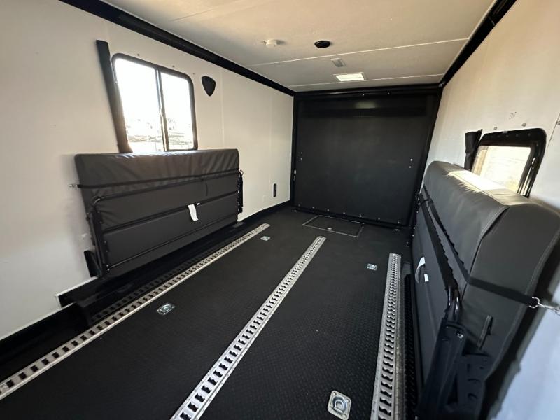 The Stealth Trailers Nomad toy hauler can go from the job site to the campsite because it works as hard as it plays! At a fraction of the price of the luxury toy haulers on the market, the Nomad provides you and your active family with a value-friendly alternative that will still deliver the essential comforts for camping. The Nomad can handle almost any type of gear you throw at it, like dirt bikes, side-by-sides, Jeeps, cars, and construction equipment because it is wider than most RVs with its 8' 6" body. The Nomad has a seamless aluminum flat top roof, a 36" slant wedge, an 18" extended triple tube A-frame, 5,000-LB recessed D-rings, a deluxe RV door with window and screen, and an outside shower. The .040" screwless aluminum exterior comes in many different colors so that you can pick the one that suits your taste best, and some of the most popular options that you can add to your trailer are the wall-mount sofa, power awning with LED lights, two-tone exterior with divider strip, Happijac bed system, and recessed E-track.