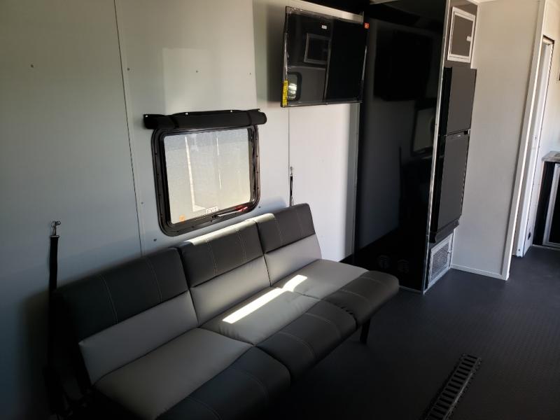 The Stealth Trailers Nomad toy hauler can go from the job site to the campsite because it works as hard as it plays! At a fraction of the price of the luxury toy haulers on the market, the Nomad provides you and your active family with a value-friendly alternative that will still deliver the essential comforts for camping. The Nomad can handle almost any type of gear you throw at it, like dirt bikes, side-by-sides, Jeeps, cars, and construction equipment because it is wider than most RVs with its 8' 6" body. The Nomad has a seamless aluminum flat top roof, a 36" slant wedge, an 18" extended triple tube A-frame, 5,000-LB recessed D-rings, a deluxe RV door with window and screen, and an outside shower. The .040" screwless aluminum exterior comes in many different colors so that you can pick the one that suits your taste best, and some of the most popular options that you can add to your trailer are the wall-mount sofa, power awning with LED lights, two-tone exterior with divider strip, Happijac bed system, and recessed E-track.