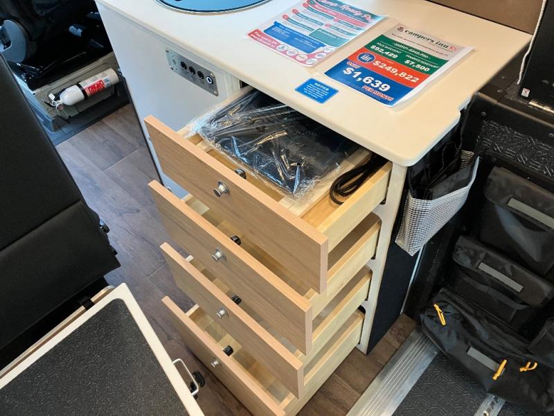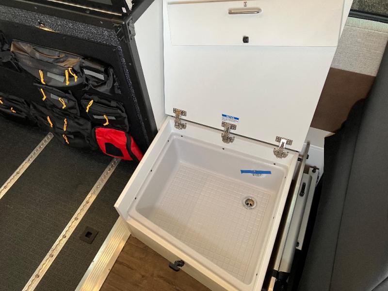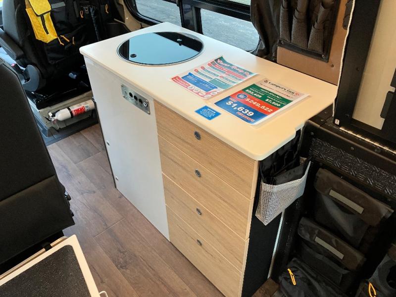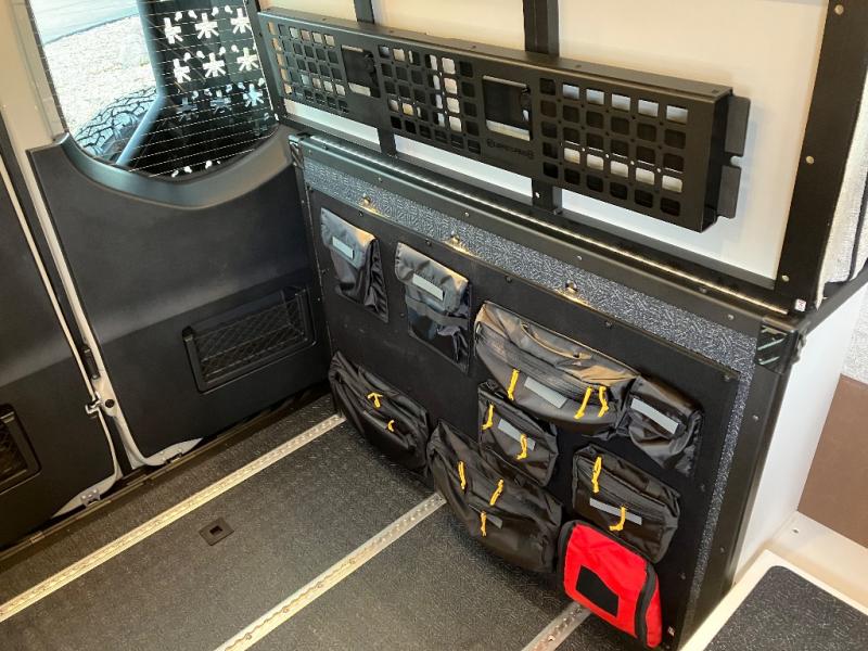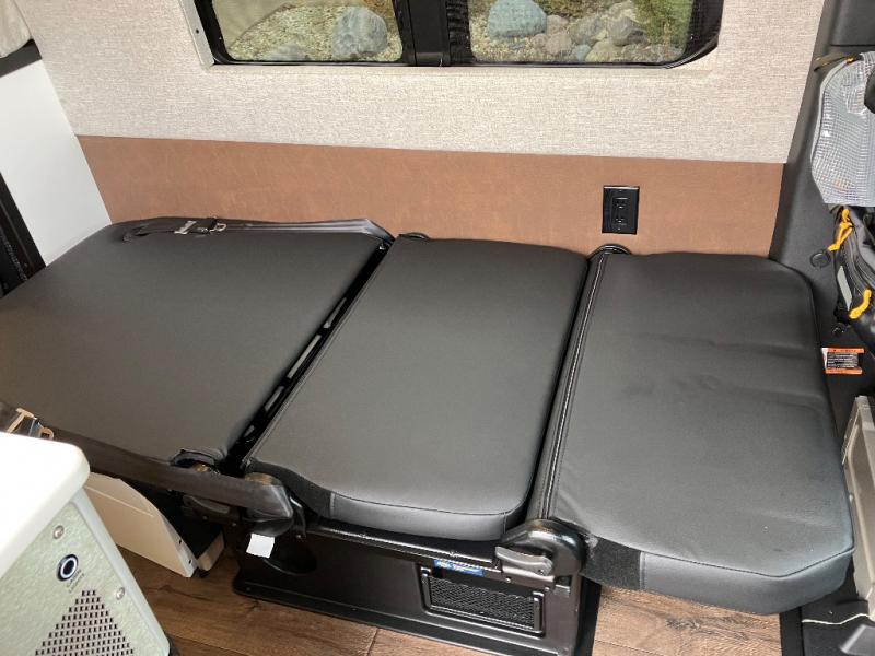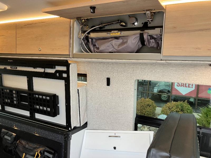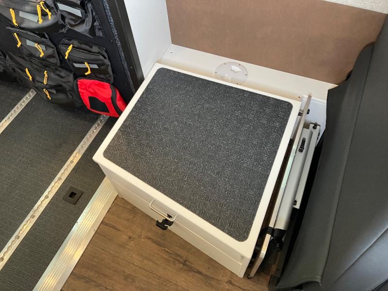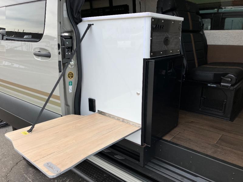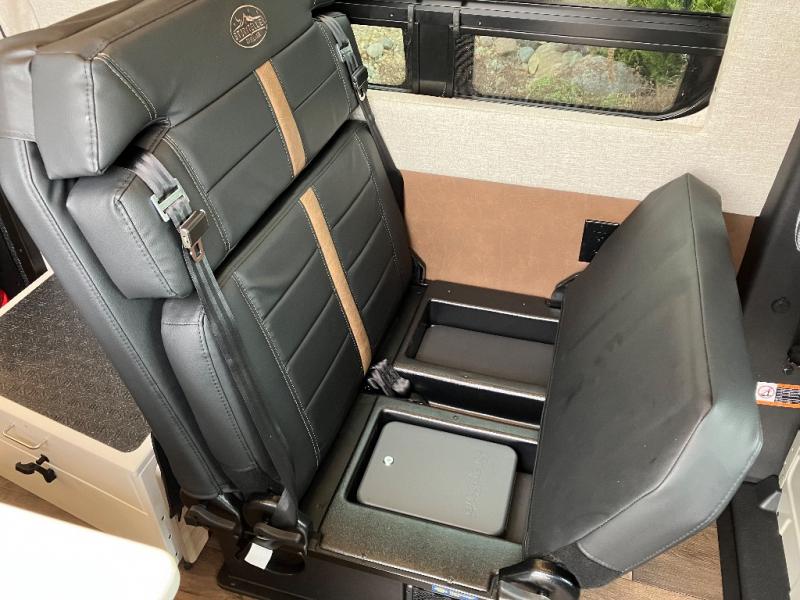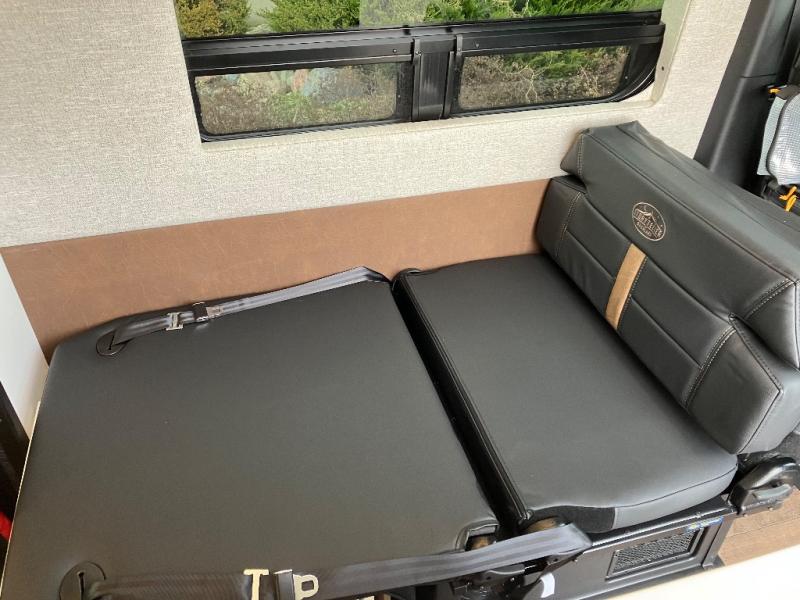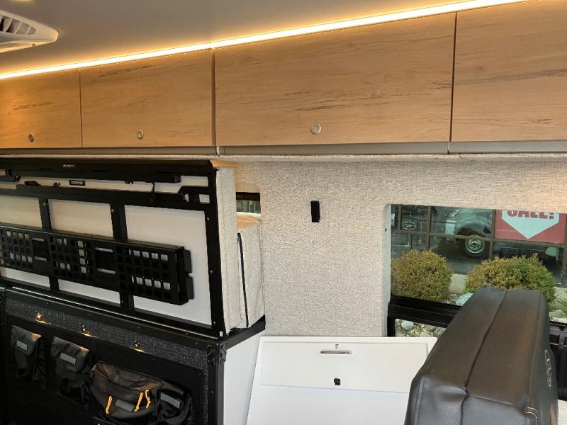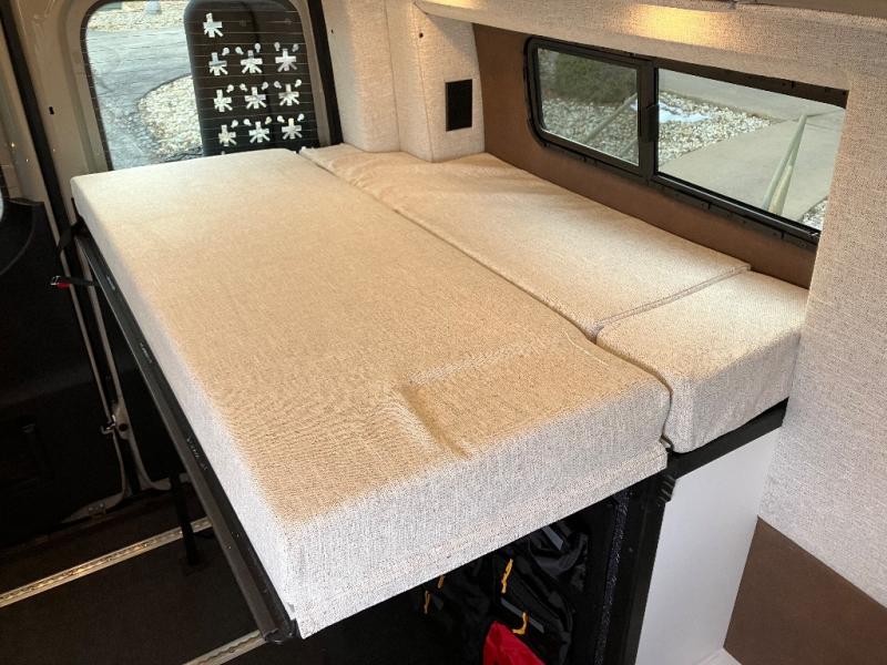 The Beast MODE OG van is more rugged than ever to meet your adventurous lifestyle! There is an nVader brush guard, along with an nVader ladder, running boards, and storage box. The swivel driver and passenger seats make for a comfortable drive and once you arrive at your destination you can prepare a delicious meal with the portable induction cooktop or stainless-steel microwave, and there is a refrigerator/freezer to keep food fresh. The cargo area has an L-track system that can fold up the Dreamweaver RV queen-size bed when you need to load your bikes into the back. Plus, you have a GrooveLounge 2-seater convertible sofa bed that can be for sitting, lounging, or sleeping!
