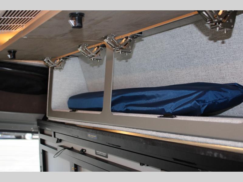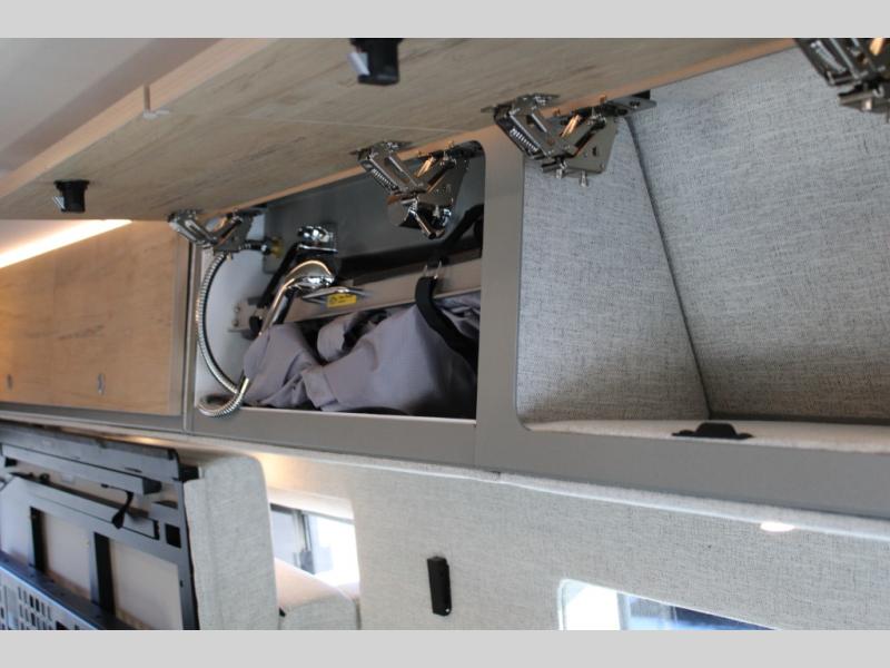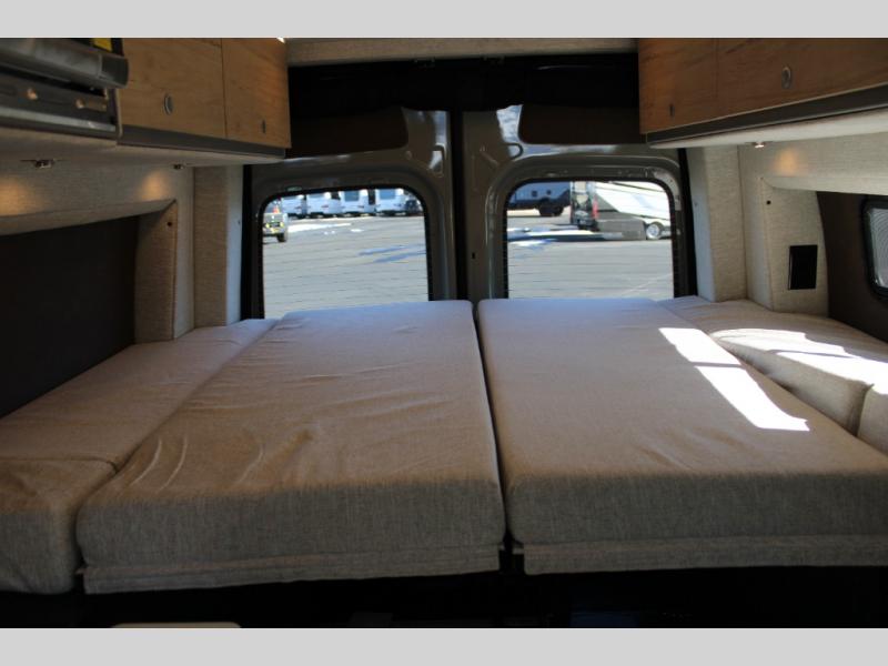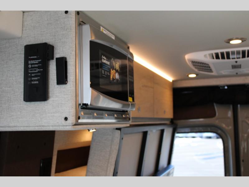 Pack your bags and head out on a great adventure in this motorhome! There is flexible living all throughout between the GrooveLounge which can be used for sitting, lounging, or sleeping at night, plus the cargo area has an L-track system to unfold the Dreamweaver bed/convertible work surface for versatile use. Prepare your best home cooked meals on the road with the portable induction cooktop and store your food in the refrigerator/freezer. You can also freshen up after a long day of traveling in the HALO interior shower system with a FlexSpace concealed shower pan and portable toilet.