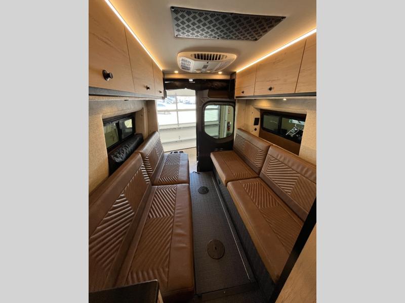 Live free, explore endlessly, and tell better stories with the Storyteller Overland Class B diesel van! With an all-wheel drive, Mercedes-Benz sprinter chassis and diesel engine, the Storyteller Overland Crew MODE XL van is always ready to go whenever you are! You can travel with complete peace of mind knowing that each van meets all of the qualifications for the various and rigorous safety tests, so it is safe. There are sliding and rear door bug screens, heavy duty custom wheels with all-terrain tires, and four 110V exterior outlets. A diesel-fired heating system and cabin A/C with soft start will keep you comfortable, and there is a MODEcom controller panel to manage your van's functions with ease. The Crew MODE XL also includes removable upper cabinetry, dimmable LED lights, privacy shades for all windows, and advanced thermal-acoustic polymer insulation for added convenience!