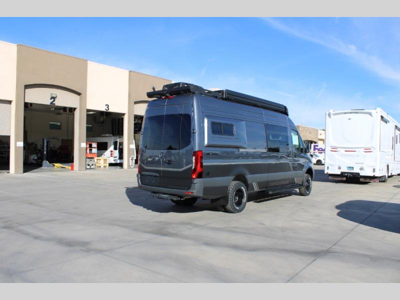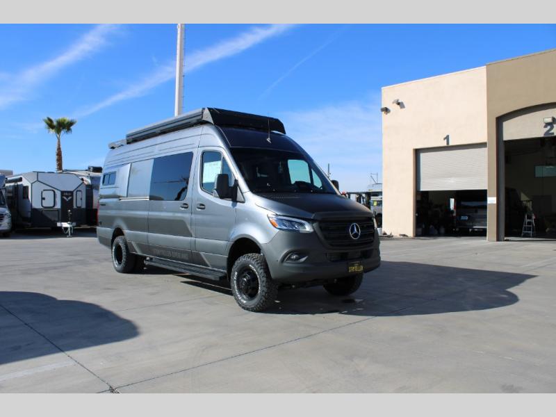 Live free, explore endlessly, and tell better stories with the Storyteller Overland Class B diesel van! With an all-wheel drive, Mercedes-Benz sprinter chassis and diesel engine, the Storyteller Overland Crew MODE XL van is always ready to go whenever you are! You can travel with complete peace of mind knowing that each van meets all of the qualifications for the various and rigorous safety tests, so it is safe. There are sliding and rear door bug screens, heavy duty custom wheels with all-terrain tires, and four 110V exterior outlets. A diesel-fired heating system and cabin A/C with soft start will keep you comfortable, and there is a MODEcom controller panel to manage your van's functions with ease. The Crew MODE XL also includes removable upper cabinetry, dimmable LED lights, privacy shades for all windows, and advanced thermal-acoustic polymer insulation for added convenience!
