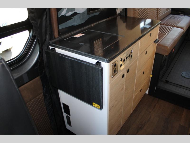 The whole gang can tag along in this spacious van with five seatbelts! There is an RV queen-size Murphy-style bed with the TroupeLounge, plus a full-size bed in the LunarLoft, allowing you to sleep four! You can easily bring more gear along since there is more space, and you're sure to appreciate the BoomBox full wet bath onboard. There is also a cassette toilet with freshwater flushing, an exterior shower, and a hot water recirculating system for added convenience. You can create your best meals with the portable induction cooktop and microwave/air fryer, and there is a 3.3 cu. ft. refrigerator/freezer for some fresh items.