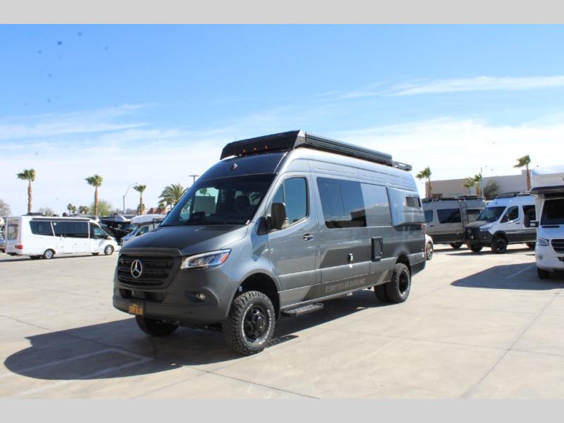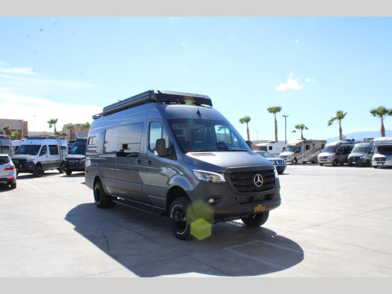 Live free, explore endlessly, and tell better stories with the Storyteller Overland Class B diesel van! With an all-wheel drive, Mercedes-Benz sprinter chassis and diesel engine, the Storyteller Overland Crew MODE XL van is always ready to go whenever you are! You can travel with complete peace of mind knowing that each van meets all of the qualifications for the various and rigorous safety tests, so it is safe. There are sliding and rear door bug screens, heavy duty custom wheels with all-terrain tires, and four 110V exterior outlets. A diesel-fired heating system and cabin A/C with soft start will keep you comfortable, and there is a MODEcom controller panel to manage your van's functions with ease. The Crew MODE XL also includes removable upper cabinetry, dimmable LED lights, privacy shades for all windows, and advanced thermal-acoustic polymer insulation for added convenience!