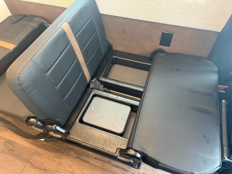 You'll love the stealthy exterior of the Dark MODE OG! The GrooveLounge can seat two adults and can convert to a couch or bed, plus you'll have Dreamweaver bed that easily folds up to reveal a workspace. You can whip up your best meals with the portable induction cooktop and stainless-steel microwave, and the refrigerator/freezer will keep cold items fresh. There is also a stainless-steel sink with a folding faucet and an exterior fold-down table if you want to get some fresh air as you prep dinner. You'll appreciate the Halo shower with a FlexSpace concealed shower pan, along with a portable toilet and hot water recirculation system.