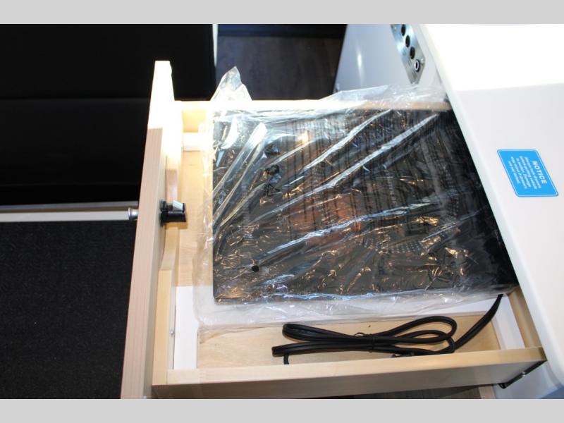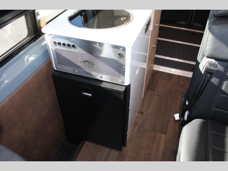 You'll love the stealthy exterior of the Dark MODE OG! The GrooveLounge can seat two adults and can convert to a couch or bed, plus you'll have Dreamweaver bed that easily folds up to reveal a workspace. You can whip up your best meals with the portable induction cooktop and stainless-steel microwave, and the refrigerator/freezer will keep cold items fresh. There is also a stainless-steel sink with a folding faucet and an exterior fold-down table if you want to get some fresh air as you prep dinner. You'll appreciate the Halo shower with a FlexSpace concealed shower pan, along with a portable toilet and hot water recirculation system.