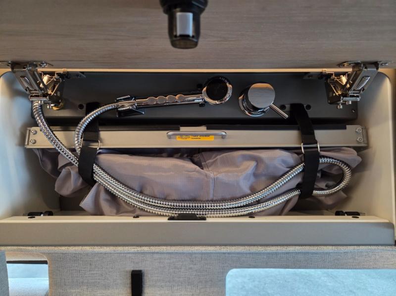 You'll love the stealthy exterior of the Dark MODE OG! The GrooveLounge can seat two adults and can convert to a couch or bed, plus you'll have Dreamweaver bed that easily folds up to reveal a workspace. You can whip up your best meals with the portable induction cooktop and stainless-steel microwave, and the refrigerator/freezer will keep cold items fresh. There is also a stainless-steel sink with a folding faucet and an exterior fold-down table if you want to get some fresh air as you prep dinner. You'll appreciate the Halo shower with a FlexSpace concealed shower pan, along with a portable toilet and hot water recirculation system.