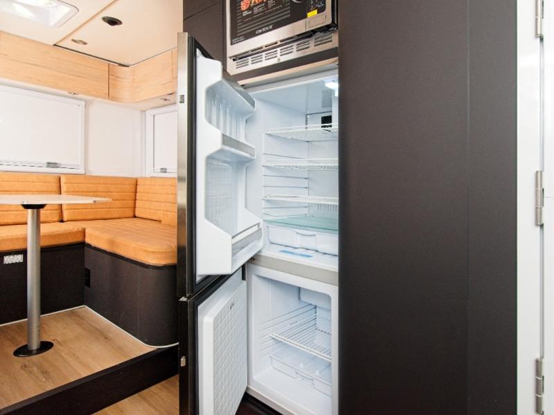 Designed for extended off-grid living, the GXV HILT features a massive 1320W solar array, generous 120-gallon fresh water capacity, and robust lithium-ready electrical support. With sleeping space for up to 4 people and 2 dedicated beds, this coach blends expedition-level durability with residential comfort. The interior showcases a sleek Oyster White color palette, while the exterior stands out in Diamond Black Crystal Pearl-Coat for a refined yet commanding presence on the road.