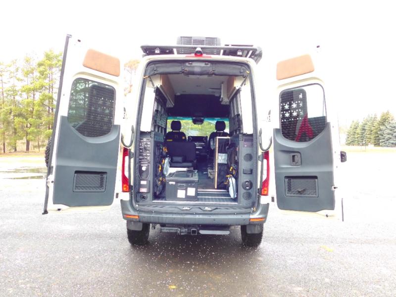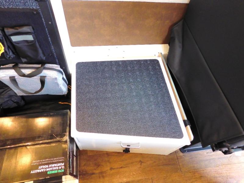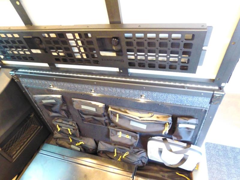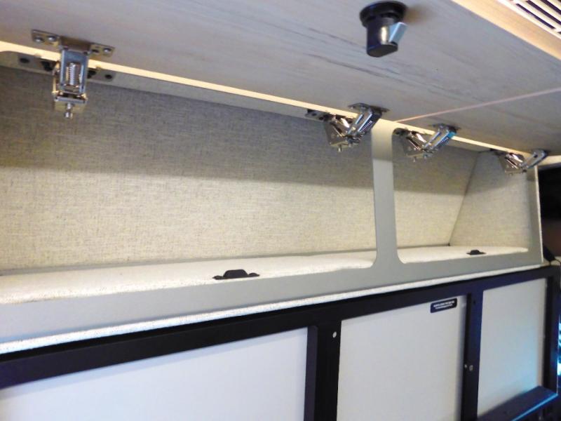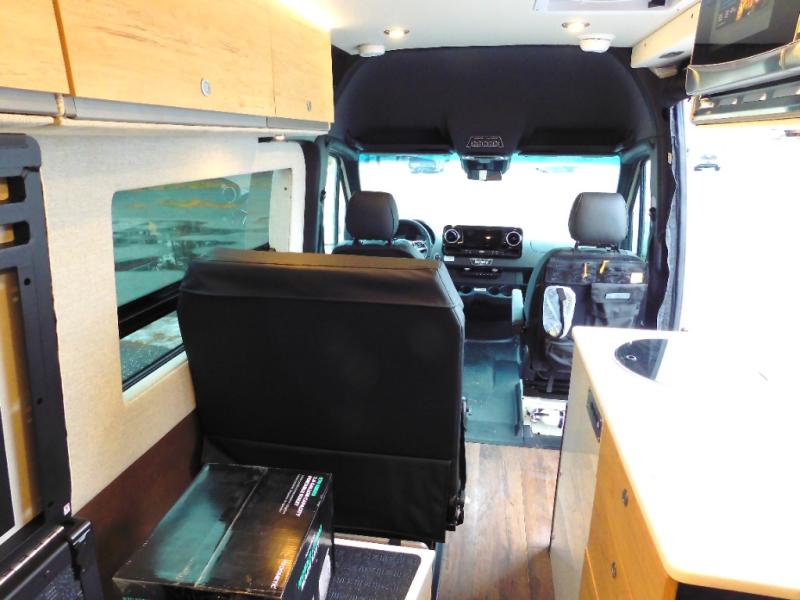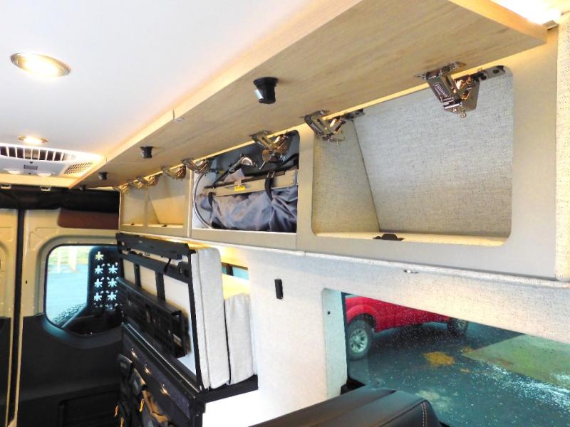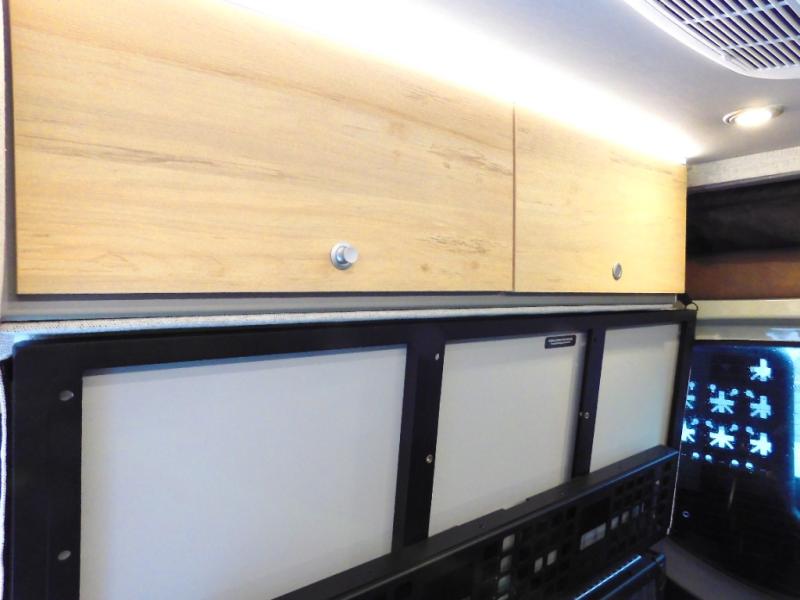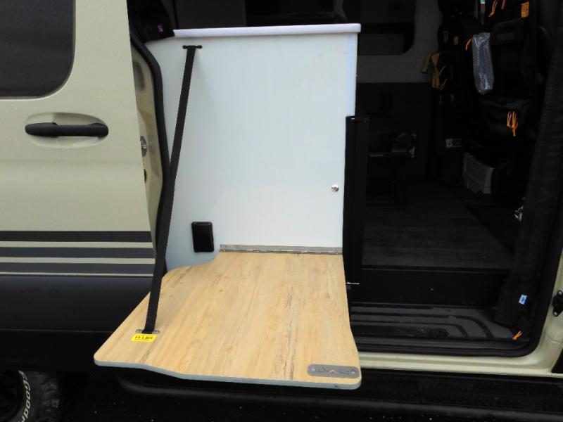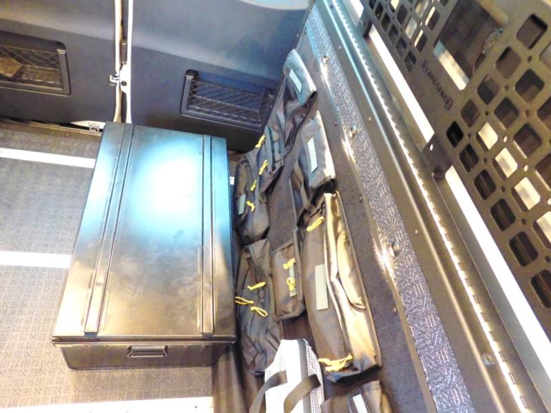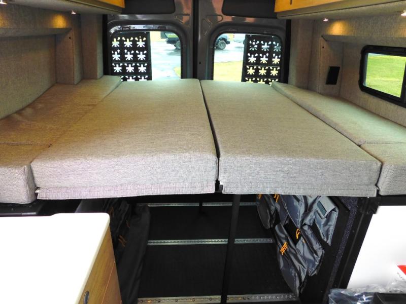 The Beast MODE van is more rugged than ever to meet your adventurous lifestyle! The nVader brush guard by Flarespace is new, along with an nVader ladder by Flarespace. The swivel driver and passenger seats make for a comfortable drive and once you arrive at your destination you can prepare a delicious meal with the portable induction cooktop, then enjoy it at the removable dinette table. The cargo area has a L-track system that can fold up the Dreamweaver bed when you need to load your bikes into the back. Plus, you have a GrooveLounge 2-seater convertible sofa bed that can be for sitting, lounging, or sleeping!