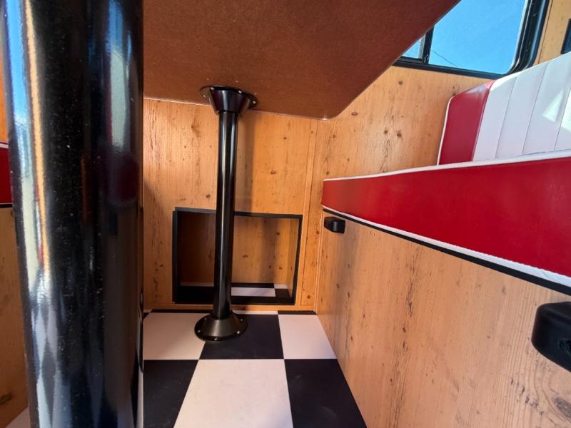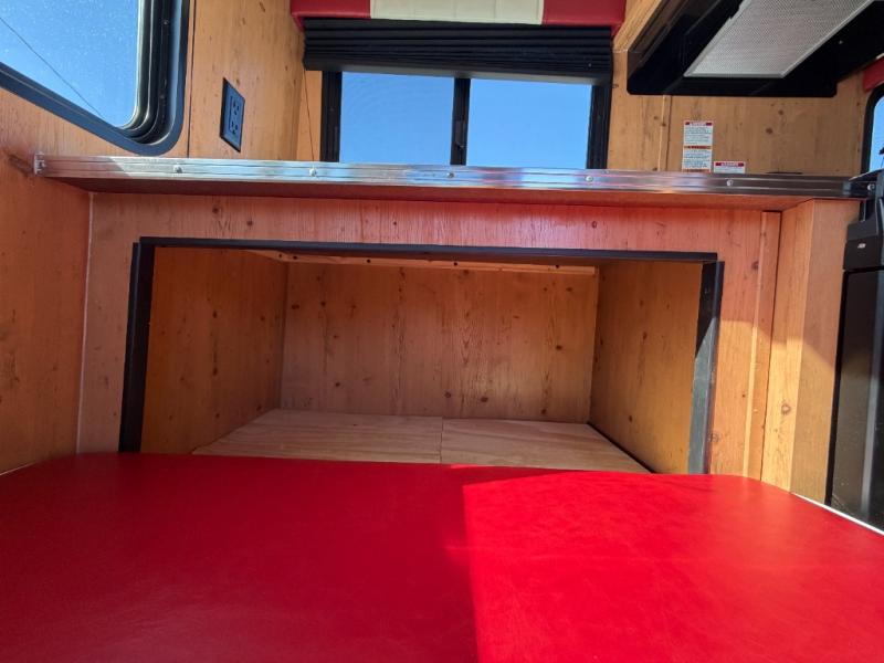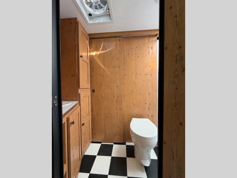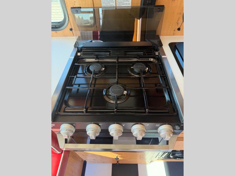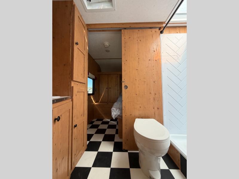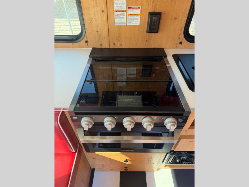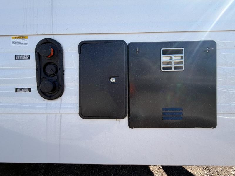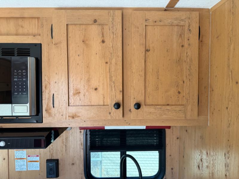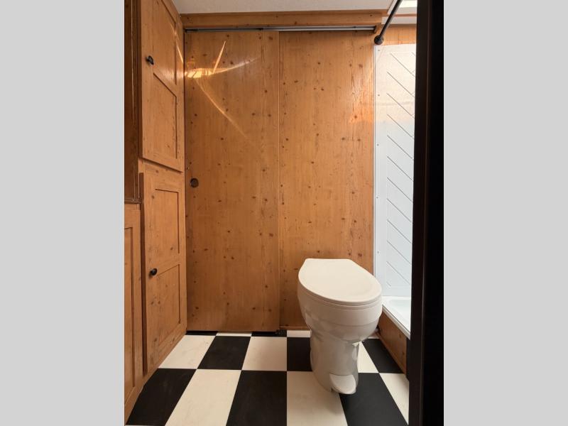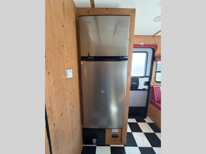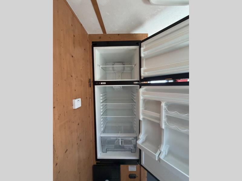 Starting at the rear of the trailer, the inviting main living area features a cozy booth dinette where you can enjoy meals, relax, or plan your next adventure. Just across, the 10.7 cu. ft. refrigerator keeps your groceries fresh and easily accessible, while the kitchen area includes a three-burner cooktop, microwave, and plenty of interior storage for cookware and essentials, making it easy to prepare meals on the go. Moving toward the center, the walk-through bathroom offers convenience and comfort with a 30" x 36" shower and a linen closet for storing towels and toiletries. At the front, the private bedroom provides a peaceful retreat with a 60" x 74" bed and overhead cabinets ideal for stowing clothing and camping gear. Thoughtfully arranged and packed with practical features, this layout combines functionality and comfort for every journey.