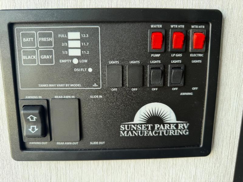 The Sunset RV travel trailers combine classic style with dependable performance, designed for travelers who want comfort and confidence on every journey. Built with marine grade floor decking and 16" O.C. construction, each model offers superior strength and durability for years of adventure. The sleek interior showcases chrome trim countertops, adding a touch of retro flair and easy-to-clean practicality. Outside, retro-style exterior lighting enhances the trailer’s timeless appeal while ensuring visibility and safety wherever you roam. From its sturdy build to its stylish finishes, this series delivers the perfect balance of quality craftsmanship and nostalgic charm for today’s modern traveler.