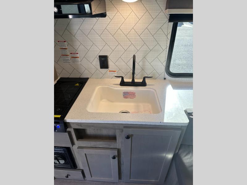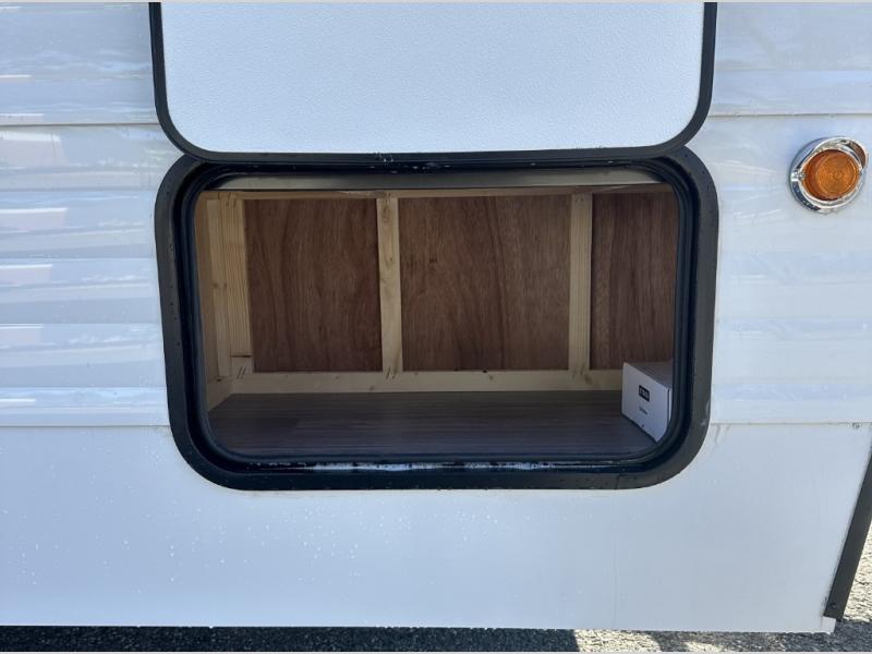 The Sunset RV travel trailers combine classic style with dependable performance, designed for travelers who want comfort and confidence on every journey. Built with marine grade floor decking and 16" O.C. construction, each model offers superior strength and durability for years of adventure. The sleek interior showcases chrome trim countertops, adding a touch of retro flair and easy-to-clean practicality. Outside, retro-style exterior lighting enhances the trailer’s timeless appeal while ensuring visibility and safety wherever you roam. From its sturdy build to its stylish finishes, this series delivers the perfect balance of quality craftsmanship and nostalgic charm for today’s modern traveler.