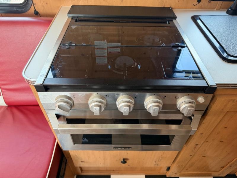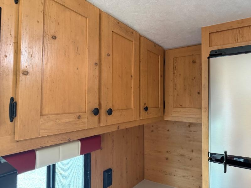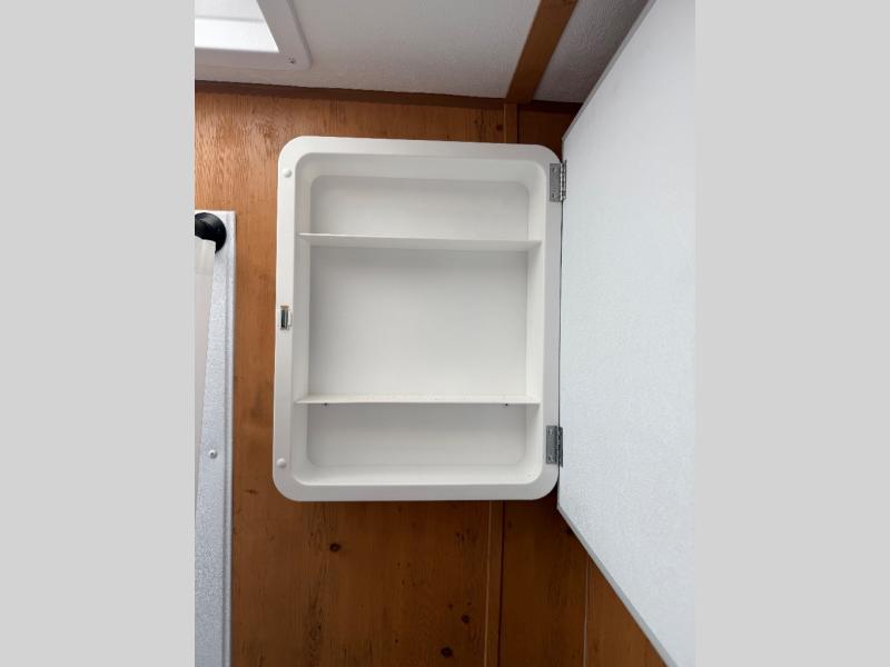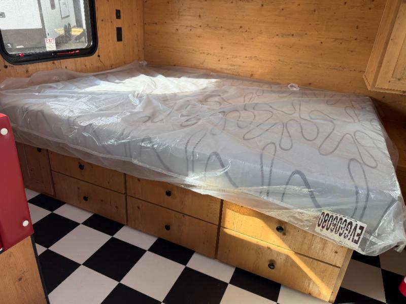 At the front of the trailer, a spacious 60" x 74" bed provides a cozy retreat where you can unwind and enjoy a restful night’s sleep. Moving toward the center, the booth dinette offers a comfortable space to dine or relax, while the 56" sofa across, adds additional seating for lounging or entertaining. In the rear corner, the kitchen comes fully equipped with a 10.7 cu. ft. refrigerator to keep your groceries fresh, a three-burner cooktop, and a microwave, giving you everything you need to cook in comfort. Opposite the kitchen, the full bathroom includes a 30" x 36" shower, allowing you to freshen up in privacy without relying on campground facilities. Thoughtfully designed and efficiently arranged, this layout offers the perfect balance of comfort, convenience, and home-like functionality.