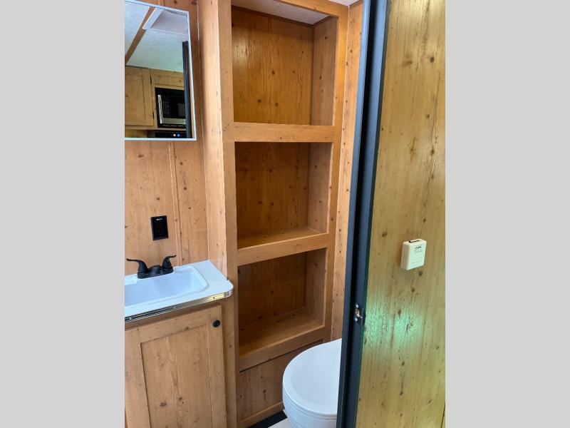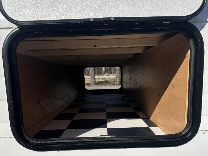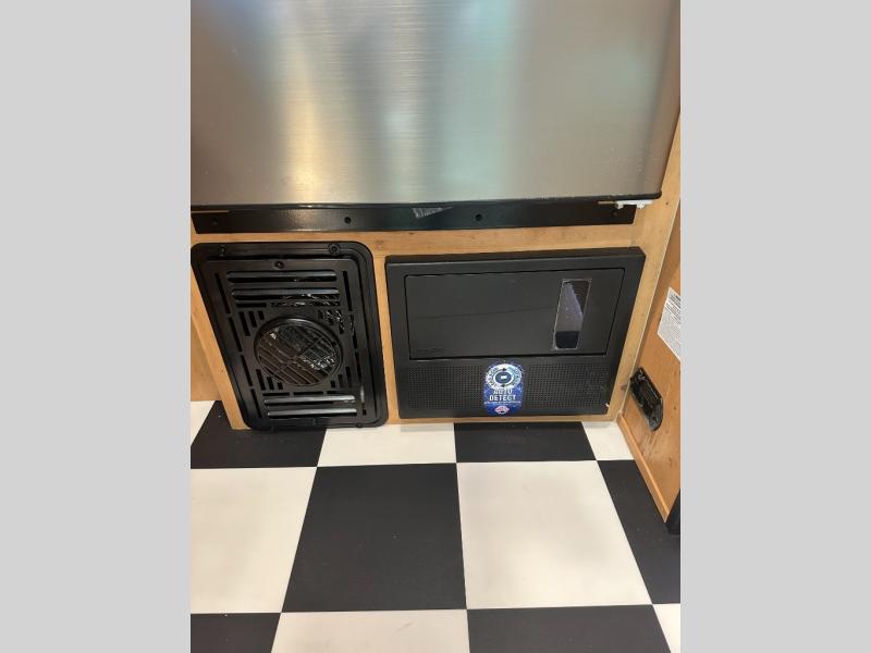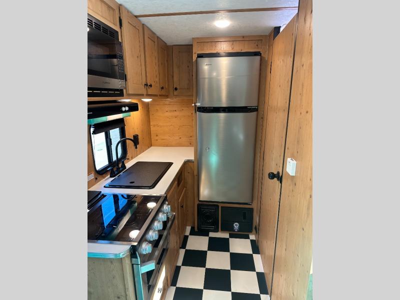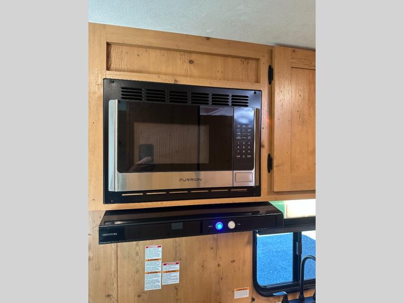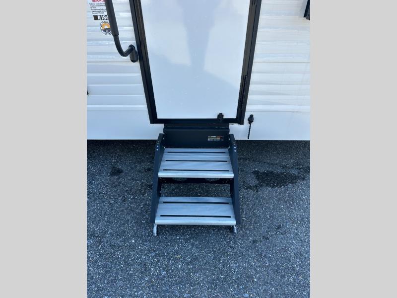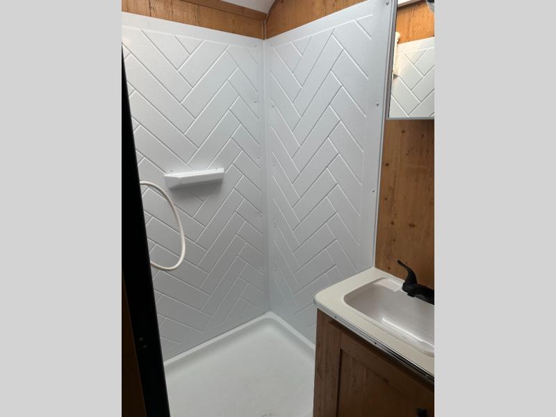 At the front of the trailer, a spacious 60" x 74" bed provides a cozy retreat where you can unwind and enjoy a restful night’s sleep. Moving toward the center, the booth dinette offers a comfortable space to dine or relax, while the 56" sofa across, adds additional seating for lounging or entertaining. In the rear corner, the kitchen comes fully equipped with a 10.7 cu. ft. refrigerator to keep your groceries fresh, a three-burner cooktop, and a microwave, giving you everything you need to cook in comfort. Opposite the kitchen, the full bathroom includes a 30" x 36" shower, allowing you to freshen up in privacy without relying on campground facilities. Thoughtfully designed and efficiently arranged, this layout offers the perfect balance of comfort, convenience, and home-like functionality.