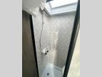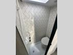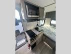 This travel trailer is comfy and accommodating because it comes with a wet bath, so you don't have to use the camp's facilities! There is a small kitchen on the interior that comes with a two-burner stove top, a double door refrigerator, and a microwave so that you can cook dinner without having to start a fire, and since it is indoors, you will be able to keep the bugs away while you prepare something delicious to eat. If you need to rinse off some gear, the outside shower will be especially useful, and if you need to charge your devices, use the USB ports. You will also find a Winegard HDTV antenna on this model.