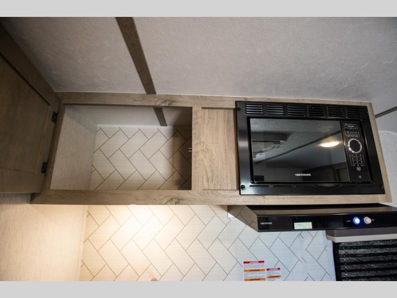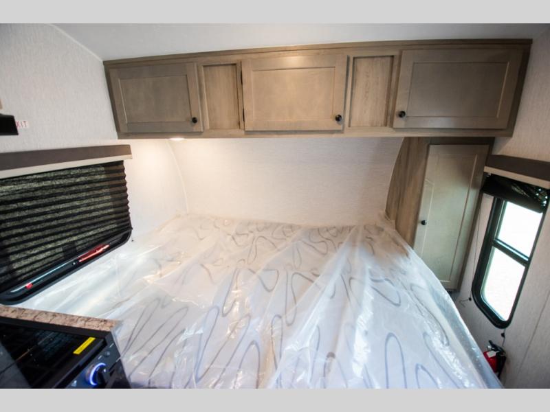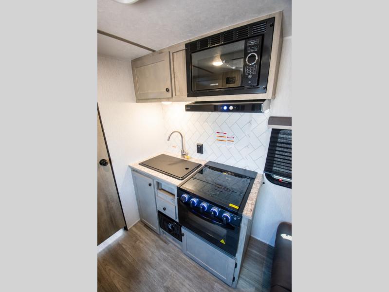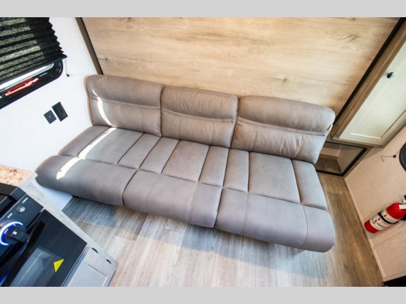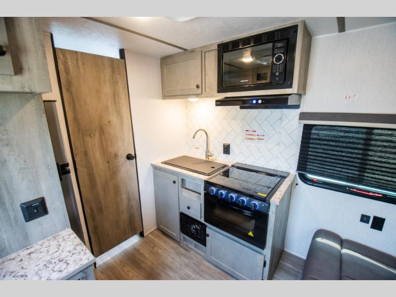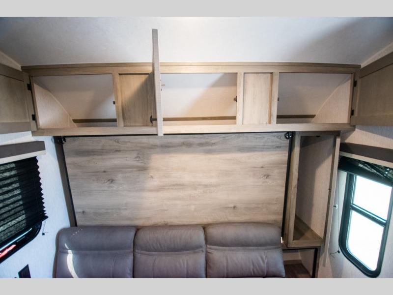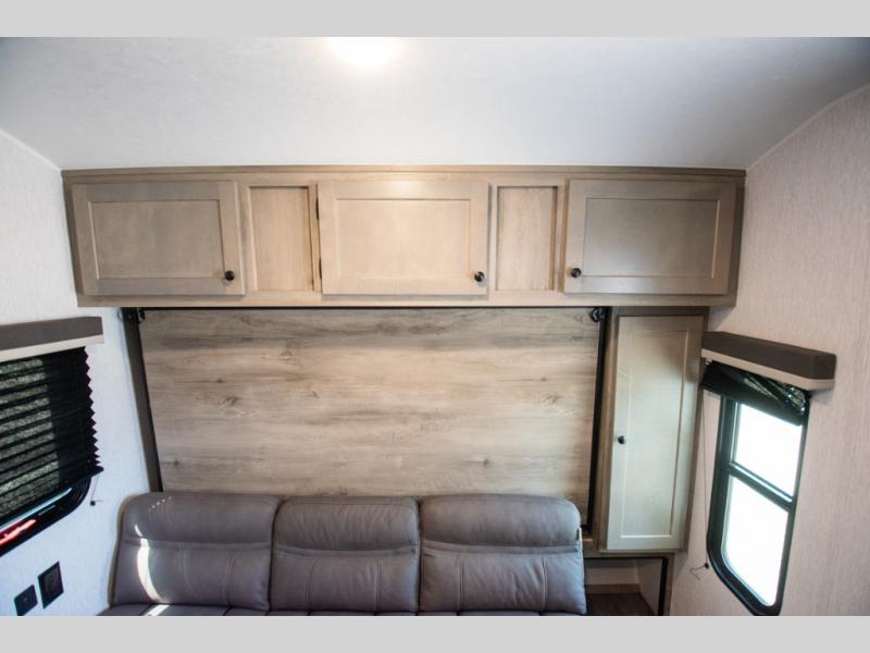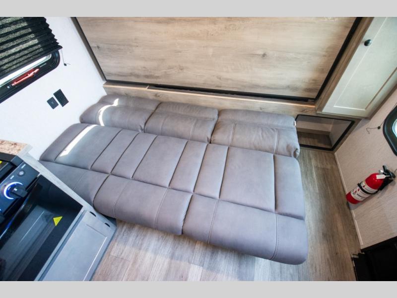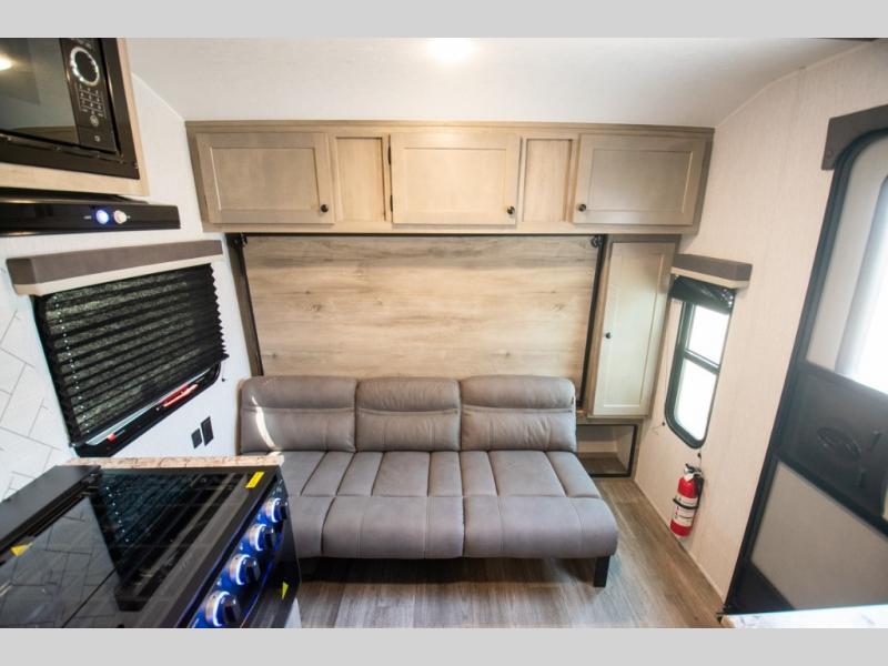 This compact travel trailer will be perfect for trips to the lake. Since there is a front Murphy bed, you won't have to sleep on an air mattress, and the convenient rear full bathroom lets you freshen up each day. Breakfast can be made on either the three burner cooktop, warmed up in the microwave oven, or even at the outside kitchen. When you're ready to wind down at night, you can grab a book and head to the sofa for a relaxing evening!