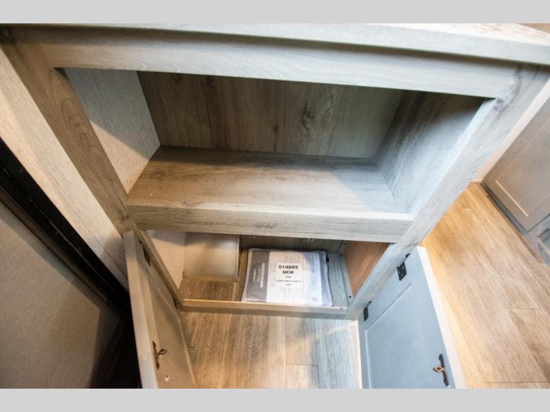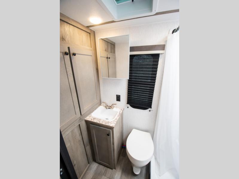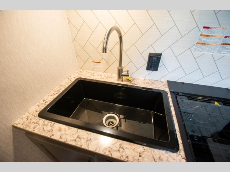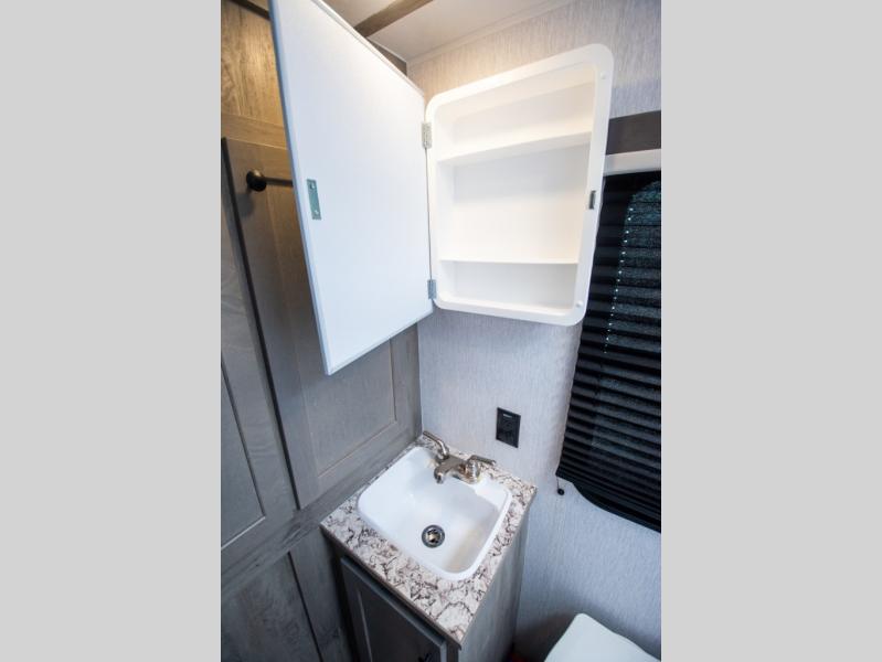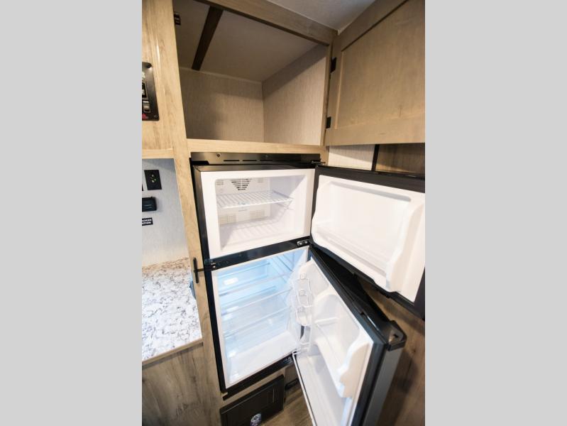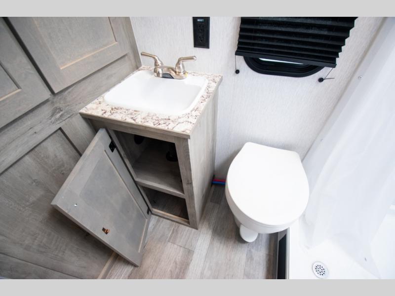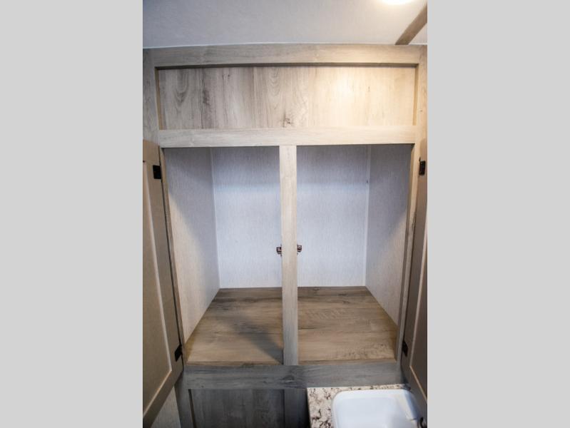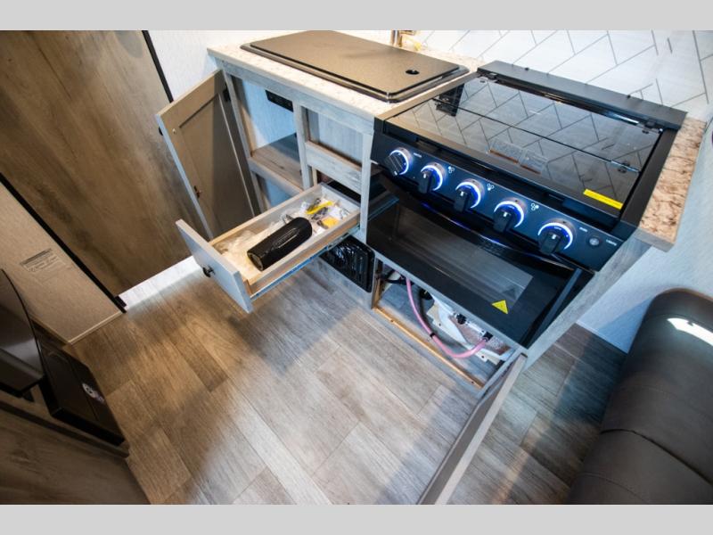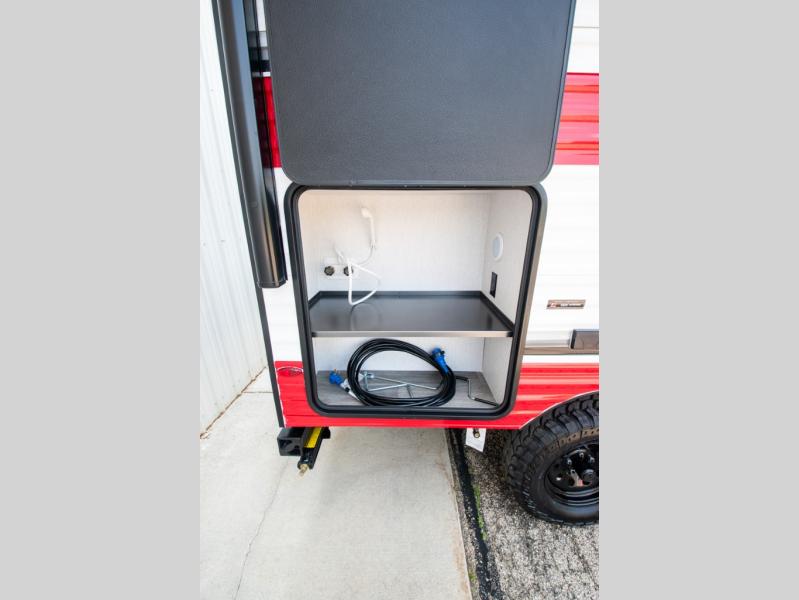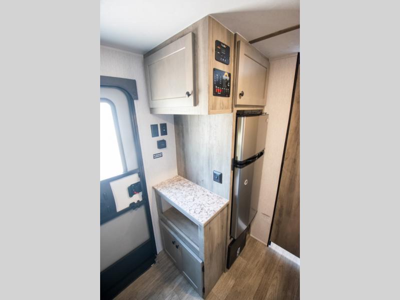 This compact travel trailer will be perfect for trips to the lake. Since there is a front Murphy bed, you won't have to sleep on an air mattress, and the convenient rear full bathroom lets you freshen up each day. Breakfast can be made on either the three burner cooktop, warmed up in the microwave oven, or even at the outside kitchen. When you're ready to wind down at night, you can grab a book and head to the sofa for a relaxing evening!