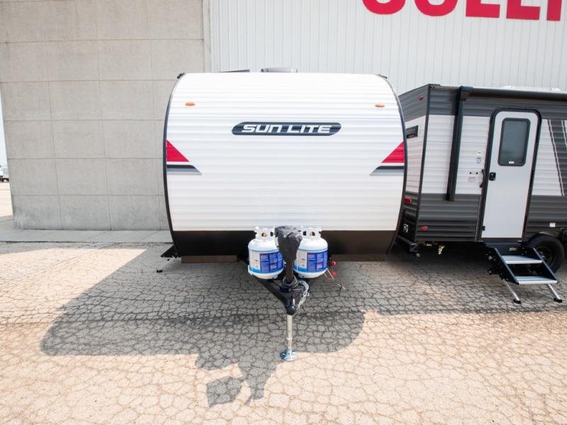 You can trust the build and enjoy your experience with any one of these Sunset Park RV Sun Lite travel trailers! Their aerodynamic profile is not only easy to haul, but also saves on fuel. They are built to withstand years of traveling even though they are lightweight with a diamond plate rock guard, a one piece PVC roof membrane, Dexter Spring-Leaf axles, and tinted safety glass windows. Some comfort standards you are sure to enjoy are the two-burner stove top range with hood, light and fan, plus the refrigerator and microwave, and an outside shower to help keep the dirt outdoors where it belongs.