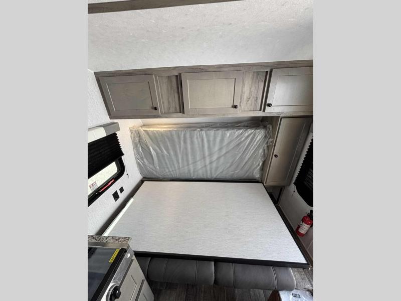 This compact travel trailer will be perfect for trips to the lake. Since there is a front Murphy bed, you won't have to sleep on an air mattress, and the convenient rear full bathroom lets you freshen up each day. Breakfast can be made on either the three burner cooktop, warmed up in the microwave oven, or even at the outside kitchen. When you're ready to wind down at night, you can grab a book and head to the sofa for a relaxing evening!