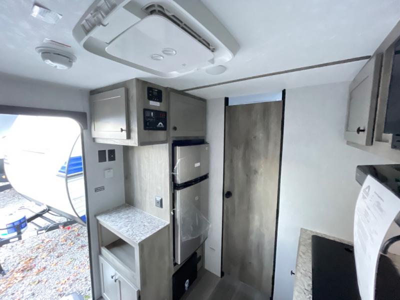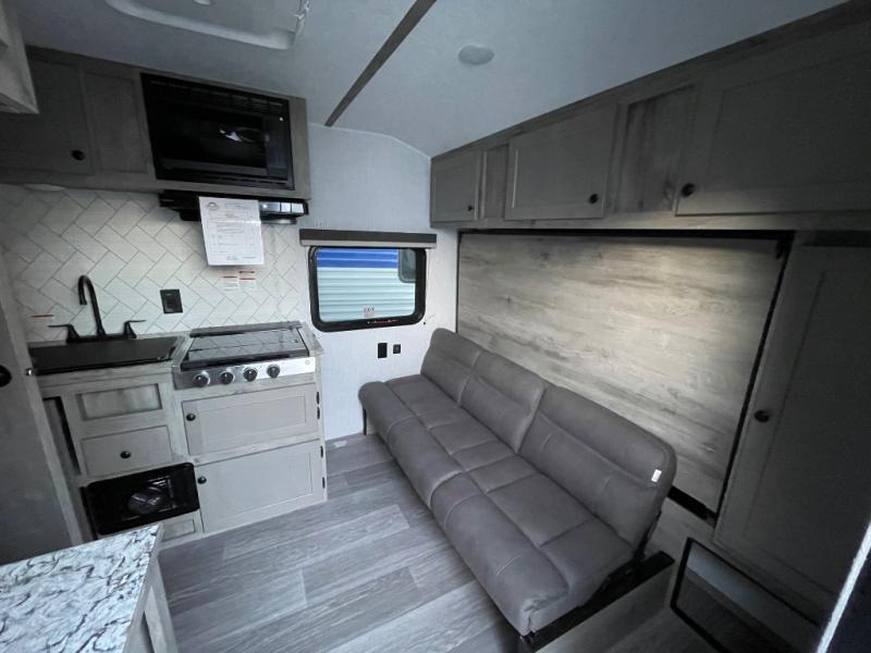 This compact travel trailer will be perfect for trips to the lake. Since there is a front Murphy bed, you won't have to sleep on an air mattress, and the convenient rear full bathroom lets you freshen up each day. Breakfast can be made on either the three burner cooktop, warmed up in the microwave oven, or even at the outside kitchen. When you're ready to wind down at night, you can grab a book and head to the sofa for a relaxing evening!