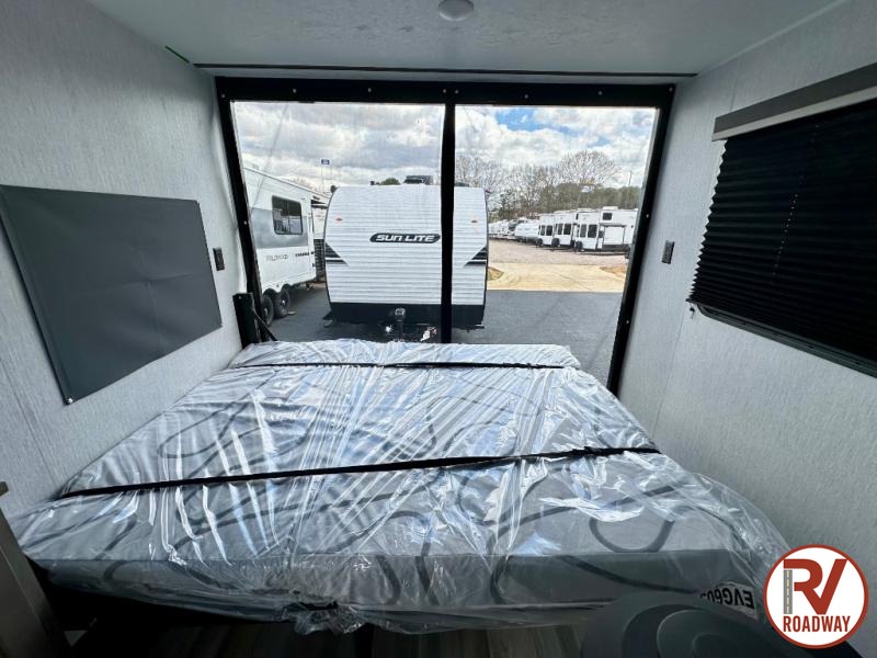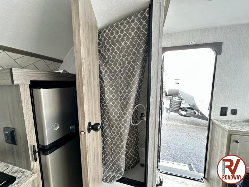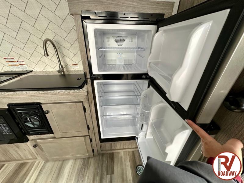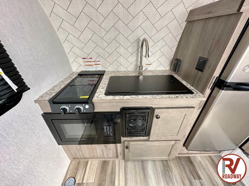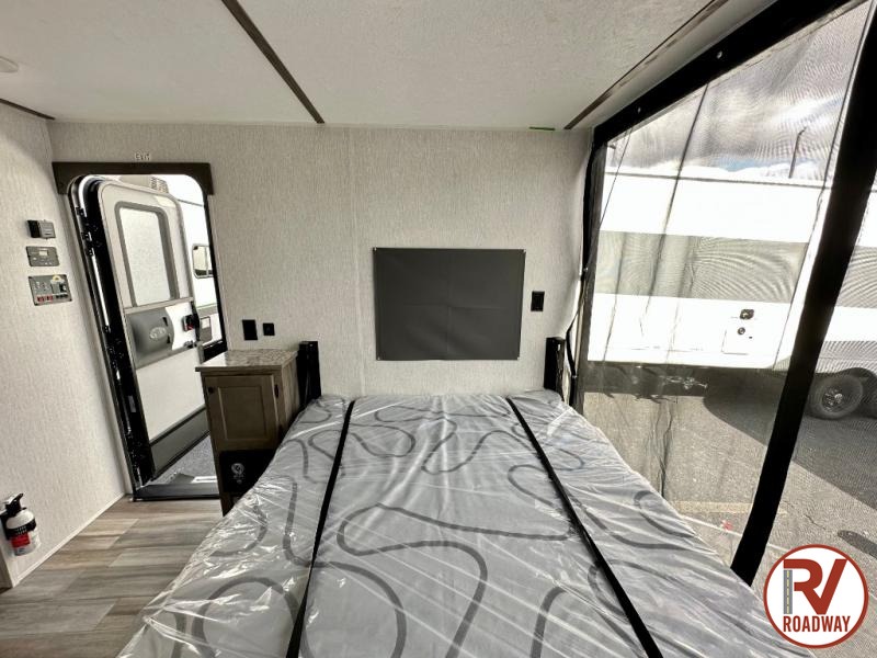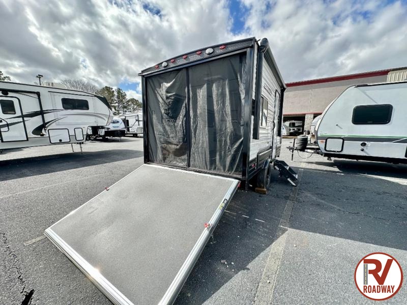 Get ready for a great camping experience where you can take along your favorite ride-on toys, kayaks, or other items that you may not normally have room to load as this toy hauler features a 6' 9" cargo width and 10' 11" cargo length. Once unloaded, set up with the rear bed that will make for a great night's rest. The front of this unit is shared with the wet bath and kitchen. Here, you can make meals on the two burner stove or in the microwave oven, and there is a refrigerator for perishables. This unit also includes the Rush Toy Hauler Package with a ramp door, dual cargo loading lights, a magnetic rear bug screen, and four D-rings to secure your toys.