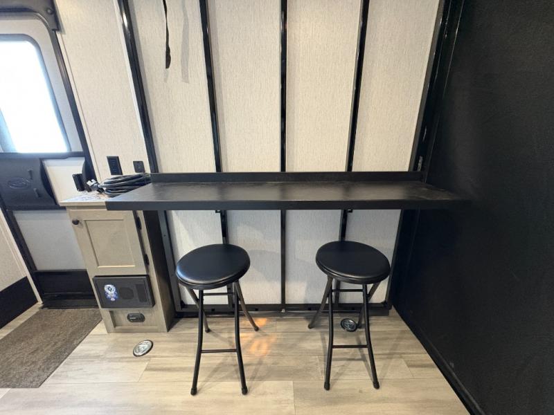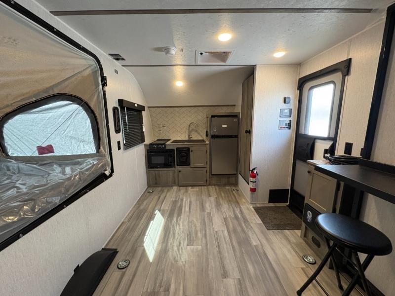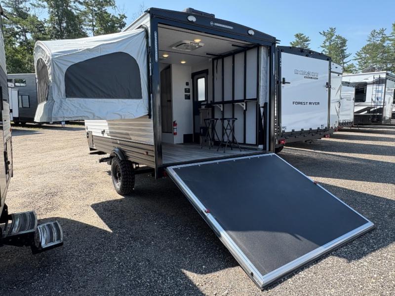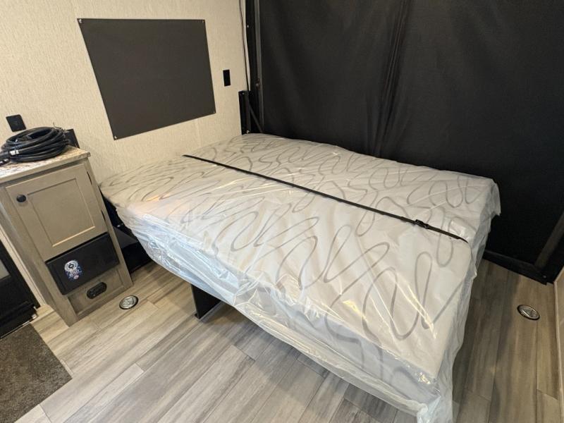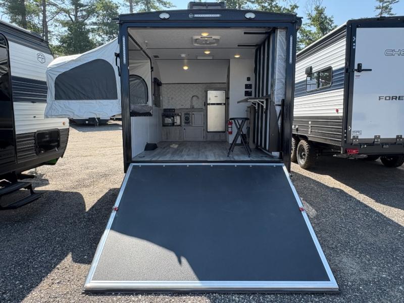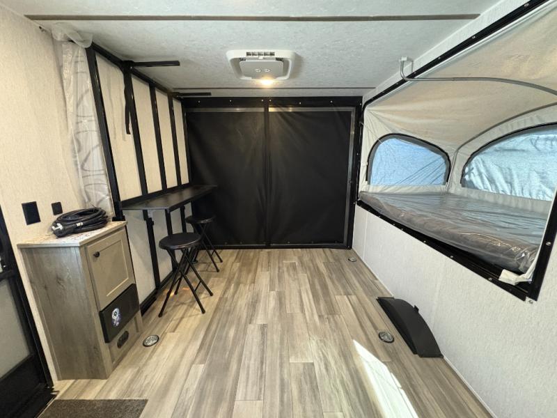 Get ready for a great camping experience where you can take along your favorite ride-on toys, kayaks, or other items that you may not normally have room to load as this toy hauler features a 6' 9" cargo width and 10' 11" cargo length. Once unloaded, set up with the rear bed that will make for a great night's rest. The front of this unit is shared with the wet bath and kitchen. Here, you can make meals on the two burner stove or in the microwave oven, and there is a refrigerator for perishables. This unit also includes the Rush Toy Hauler Package with a ramp door, dual cargo loading lights, a magnetic rear bug screen, and four D-rings to secure your toys.