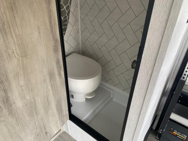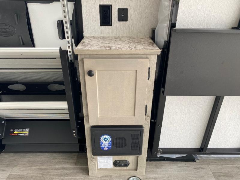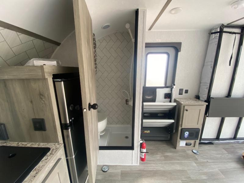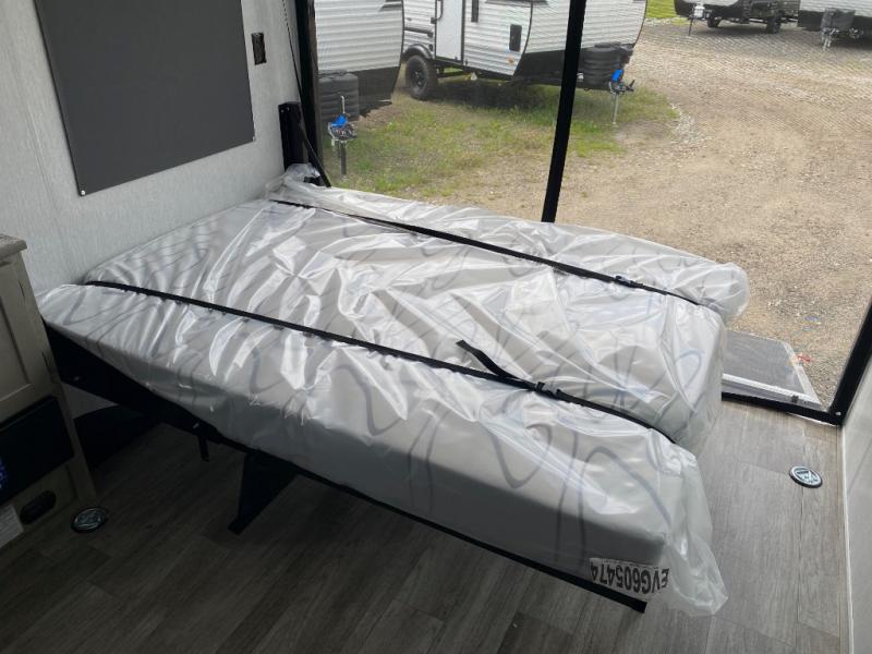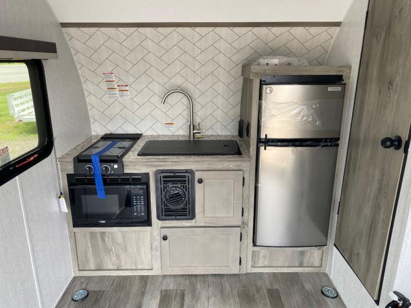 Get ready for a great camping experience where you can take along your favorite ride-on toys, kayaks, or other items that you may not normally have room to load as this toy hauler features a 6' 9" cargo width and 10' 11" cargo length. Once unloaded, set up with the rear bed that will make for a great night's rest. The front of this unit is shared with the wet bath and kitchen. Here, you can make meals on the two burner stove or in the microwave oven, and there is a refrigerator for perishables. This unit also includes the Rush Toy Hauler Package with a ramp door, dual cargo loading lights, a magnetic rear bug screen, and four D-rings to secure your toys.