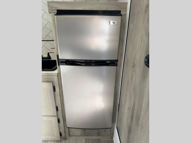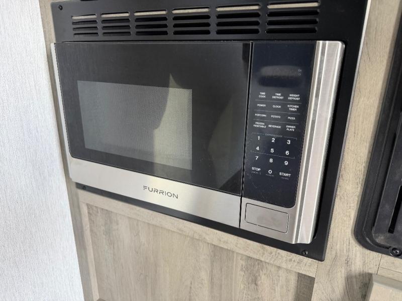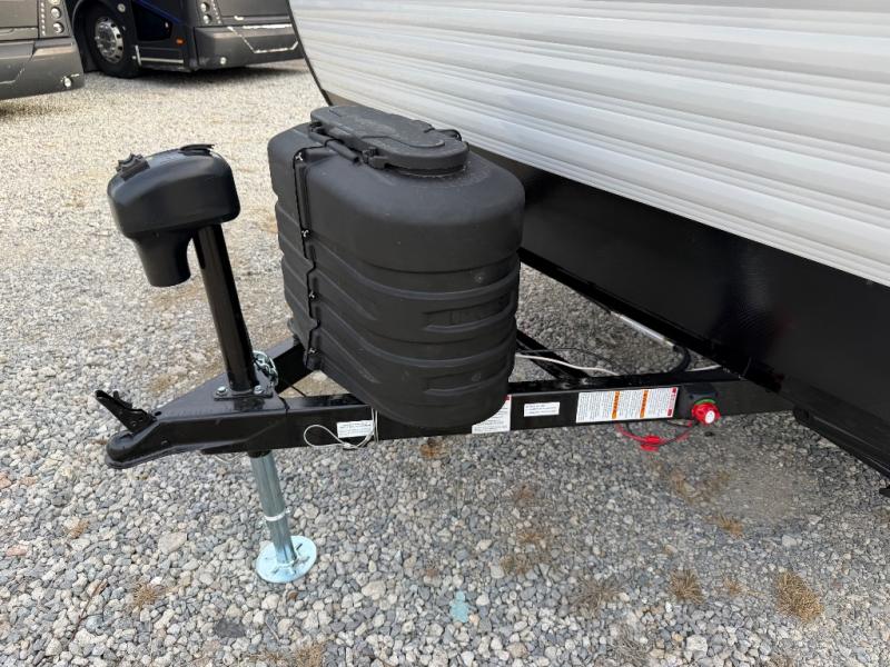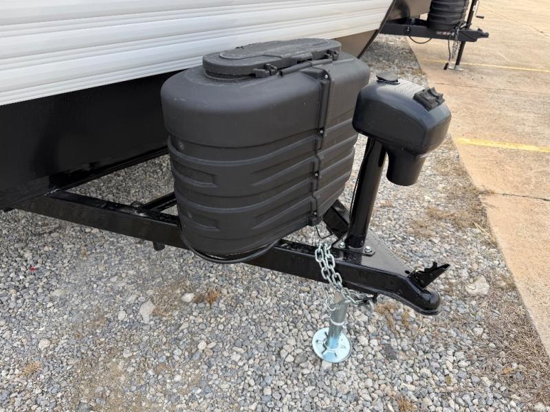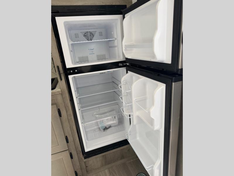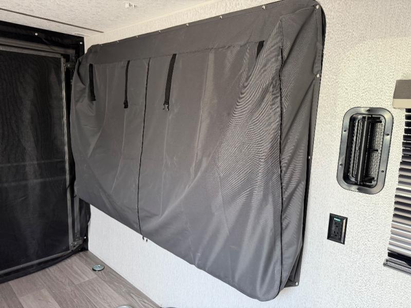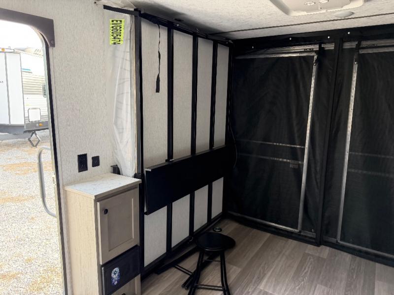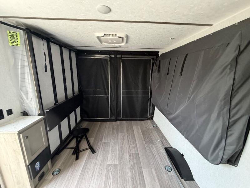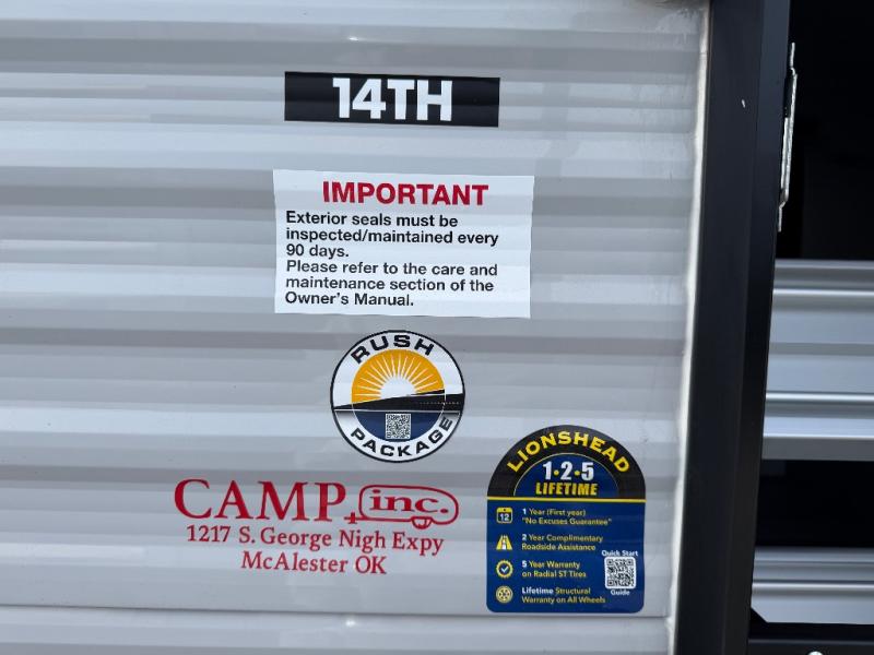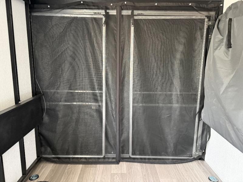 Get ready for a great camping experience where you can take along your favorite ride-on toys, kayaks, or other items that you may not normally have room to load as this toy hauler features a 6' 9" cargo width and 10' 11" cargo length. Once unloaded, set up with the rear bed that will make for a great night's rest. The front of this unit is shared with the wet bath and kitchen. Here, you can make meals on the two burner stove or in the microwave oven, and there is a refrigerator for perishables. This unit also includes the Rush Toy Hauler Package with a ramp door, dual cargo loading lights, a magnetic rear bug screen, and four D-rings to secure your toys.
